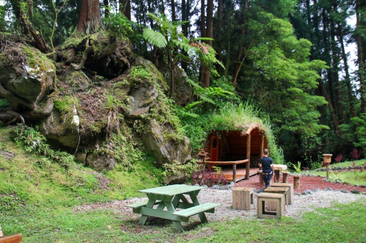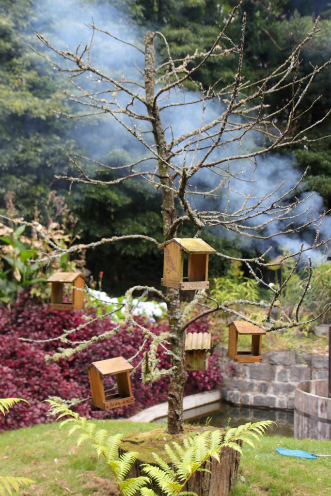 Gleich neben den Kochnischen im Erdboden befindet sich der Parque de Grená, ein lohnender Garten durch den Uhrwald. Und so ging es rauf und runter von einem Wasserfall zum nächsten. Dazwischen hingen dann lustige Schaukeln an umgefallenen Bäumen oder Klein Auenland wurde nachgestellt. Und auch hier konnte man warm baden, wenn man vom Wandern zu geschafft war. So viel zu entdecken und erkunden. Nur mit den Aussichten auf den See hatten wir noch immer kein Glück, da es noch regnete. Doch kaum verließen wir den Park und das schützende Blätterdach der Riesenfarne hörte es auch schon auf.