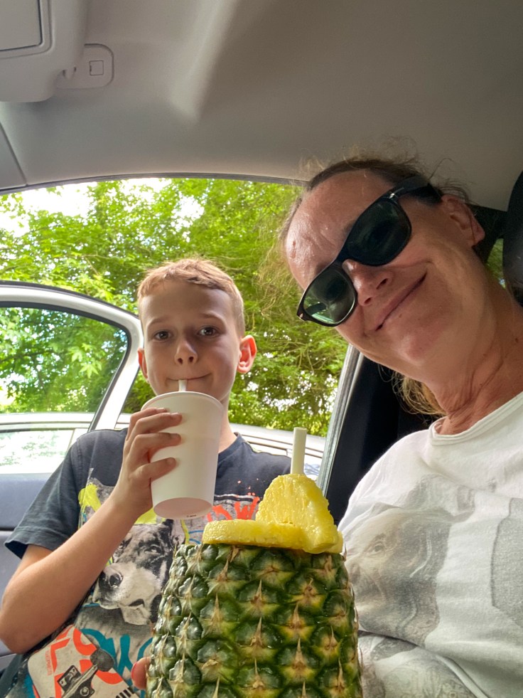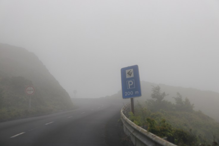 Am Parkplatz gab es dann noch eine Laufbelohnung von meinem Mann. Eine Pina Colada in der Ananas to go und eine Virgin Colada für die Kinder. Motivation kann er echt. Damit war ich direkt noch bereit an dem ein oder anderen Viewpoint, oder wie wir es hier nennen: Miradouro, auszusteigen. Allerdings die Idee meines Mannes, bei vollständiger Wolkendecke auf den Pico hochzufahren, nur weil die Straßensperrung nach 19 Uhr nun aufgehoben war, halte ich immer noch für eine fragwürdige. Die Sichtweite betrug max. 5 Meter und von Lagoa oder Aussicht waren wir weit entfernt. Das Einzige, dass wir sahen, waren ein paar verirrte Möwen und andere Männer mit ähnlichen Ideen. Irgendwie auch beruhigend, dass es noch andere Bekloppte gibt.