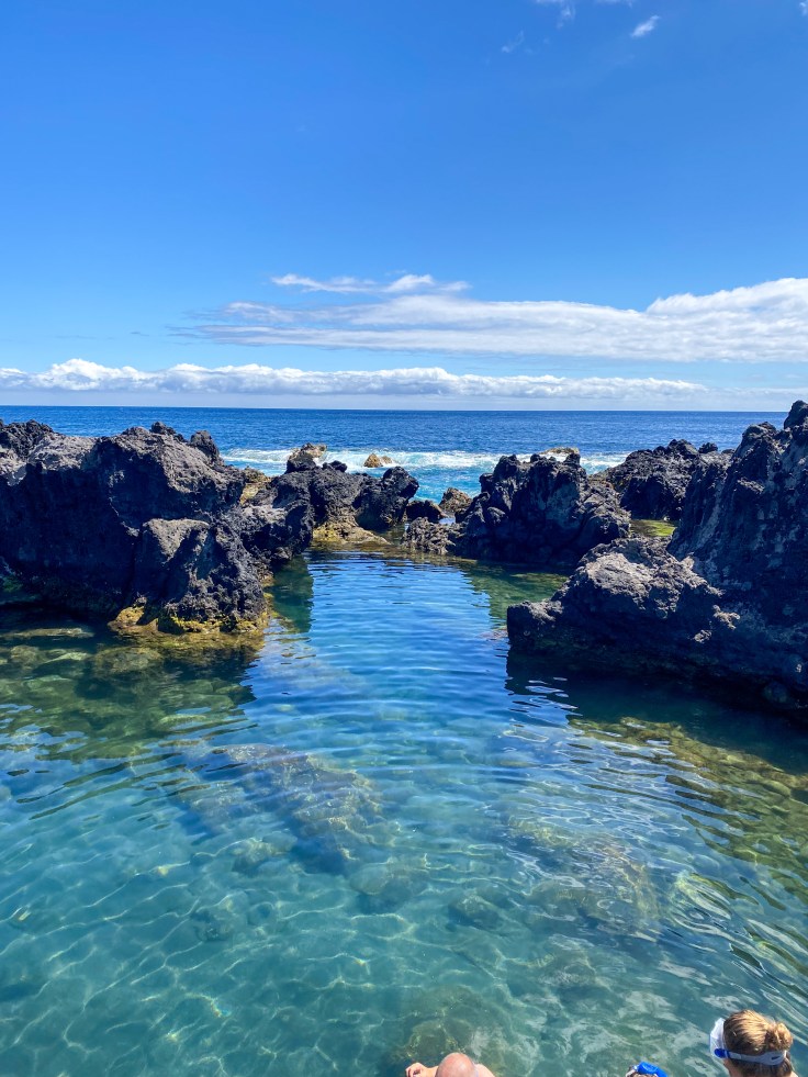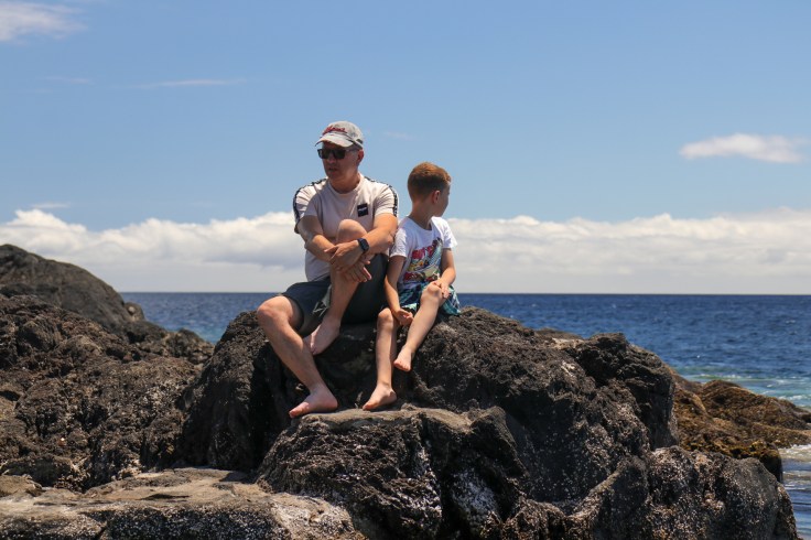 Auf unserer Inselumrundung hielten wir schlussendlich noch an einem Naturpool direkt neben der Landebahn vom Flughafen. Hier sind gleich mehrere Pools teils künstlich und teils natürlich angelegt wurden und man kann wunderbar baden. In den natürlichen Pools gab es dann noch das I-Tüpfelchen, dass man sich den Pool mit den Bewohnern des Meeres teilt. Was für mich wie ein tolles Abenteuer klingt, schließlich kann man so im glasklaren Wasser mit kleinen Fischen schwimmen, ist für andere Familienmitglieder, Namen werden nicht genannt, der pure Horror. Denn schließlich könnten sich spontan ein paar Haie in die kleinen Lagunen verirren, weil sie gerade Hunger auf einen knusprigen Touristen haben. Ich gebe zu, dass ich diese Sorge nicht ganz so ernst nehme und mich etwas darüber lustig mache. Allerdings sind wir auf einem guten Weg für die Akzeptanz der anderen Meeresmitbewohner mit uns als Badebesucher, denn heute waren wir alle zusammen in der Lagune baden. Welch ein Fortschritt.