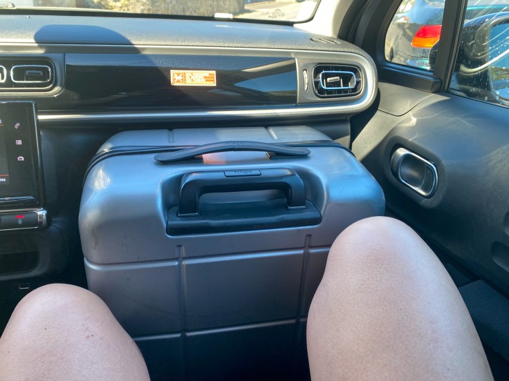 Auch das mit den Mietwagen ist hier entsprechend einfach. Die Stationen sind gut vorbereitet und da jeweils nur ein Flieger zeitgleich landet, ist der Andrang an den doch reichlichen Mietwagenstationen auch übersichtlich. Heute gab es einen Kleinwagen, aber dafür einen niegelnagelneuen. Allerdings für 4 Personen plus 4 Koffer eine echte Herausforderung, der wir uns jedoch optimistisch annahmen. Schlussendlich hatte ich auf dem Beifahrersitz einen Koffer zwischen den Beinen und die Kinder hatten hinten auch eine Schallmauer in Form einer riesigen Tasche zwischen sich. Da die Insel im Durchmesser vielleicht 15-20 km hat, ist die Anreise in die Unterkunft, egal wo, eher entspannt. Also blieb nur noch die Herausforderung, mit einem vollbeladenen Kleinstwagen ohne PS im nennenswerten Bereich auf den Berg raufzukommen. Ich glaube, wir wären schneller gewesen, wenn wir das Auto geschoben hätten, aber mal den ersten Gang bergauf zu benutzen war auch eine interessante Erfahrung.
