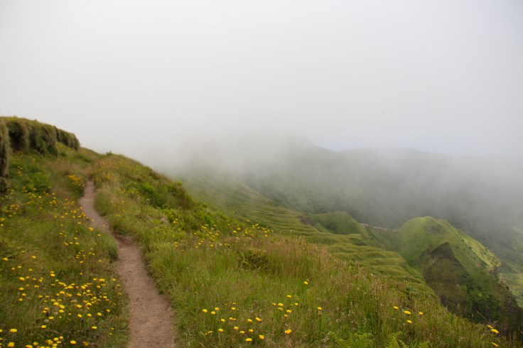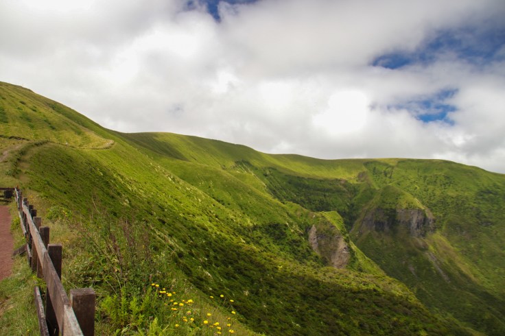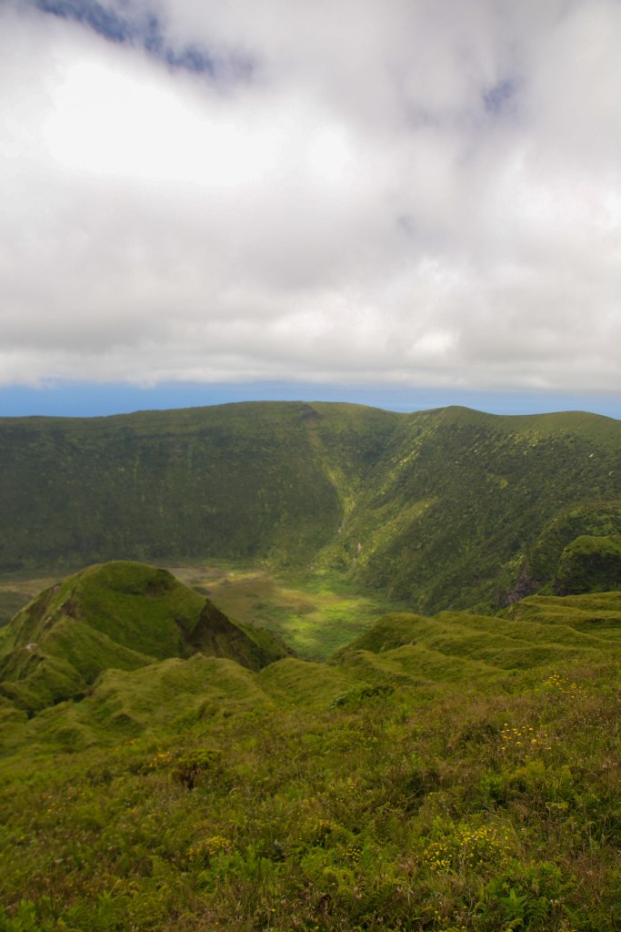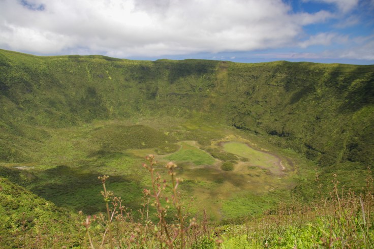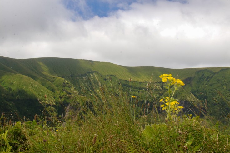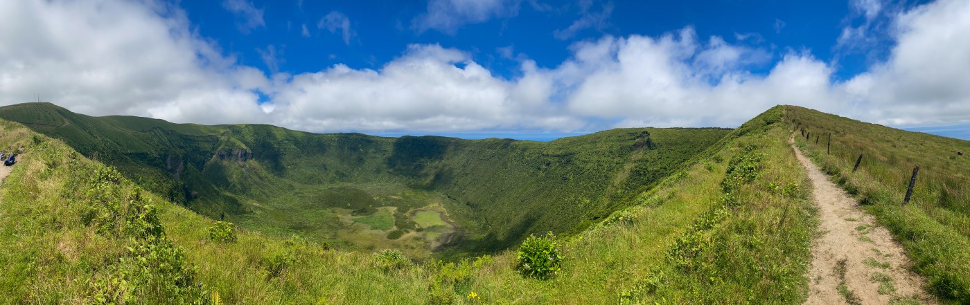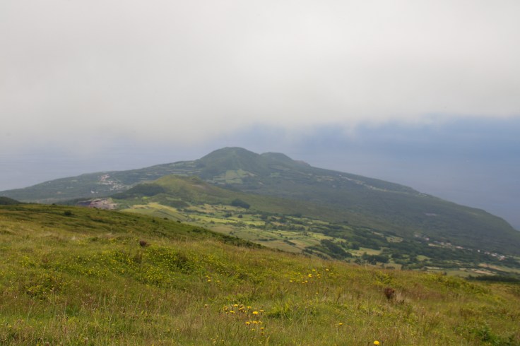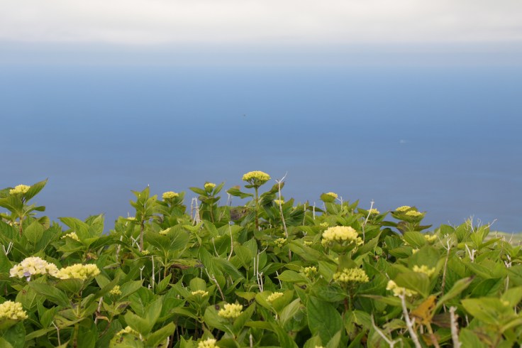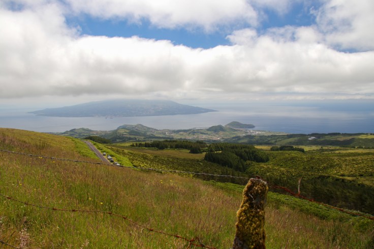 Unser heutiges Ziel, der Vulkankrater Caldeira will förmlich von uns umrundet werden. Das Wetter ist mit einem Sonnen-Wolken-Mix gut, aber nicht zu gut und vor allem nicht zu heiß. Also auf in die geographische Mitte der Insel. Hier auf Faial ist man ja tendenziell weit entfernt von jeglichem Massentourismus. In der Regel fühlt man sich wie einer von Wenigen und das ist auch gut so. Selbst an solch vielgelobten Tourismus-Zielen, wie gestern am Vulkan, steht der eigene Mietwagen nur zwischen so 20 weiteren und man muss nie befürchten, dass sich eine Schlange bildet. Das ist ein herrliches entspanntes Gefühl. Ich liebe deshalb besonders die Fahrten über die Inseln, denn nie sind die Straßen voll. Wenn ich also mal spontan anhalten möchte, um ein Foto zu schießen (völlig realistisch), dann hält Swen an und ich darf aussteigen. Nur weil garantiert oder zumindest mit hoher Wahrscheinlichkeit in den nächsten Minuten kein weiteres Auto kommt. Ein Paradies für Fotostopper wie mich.