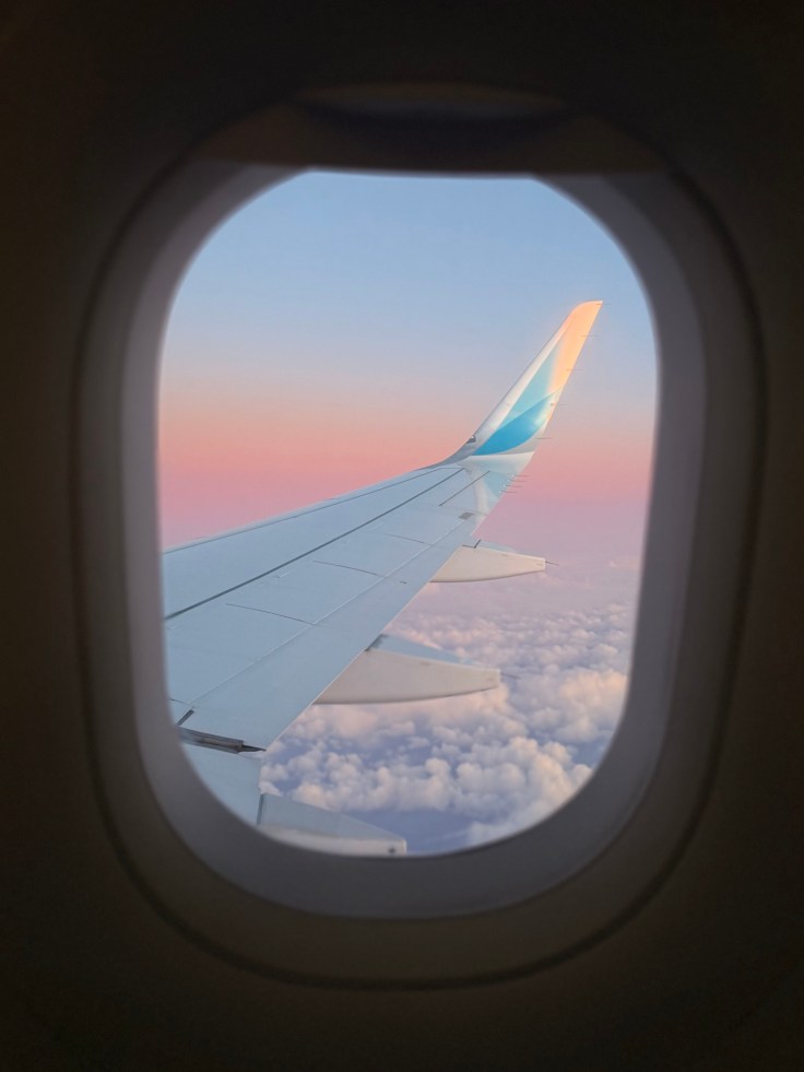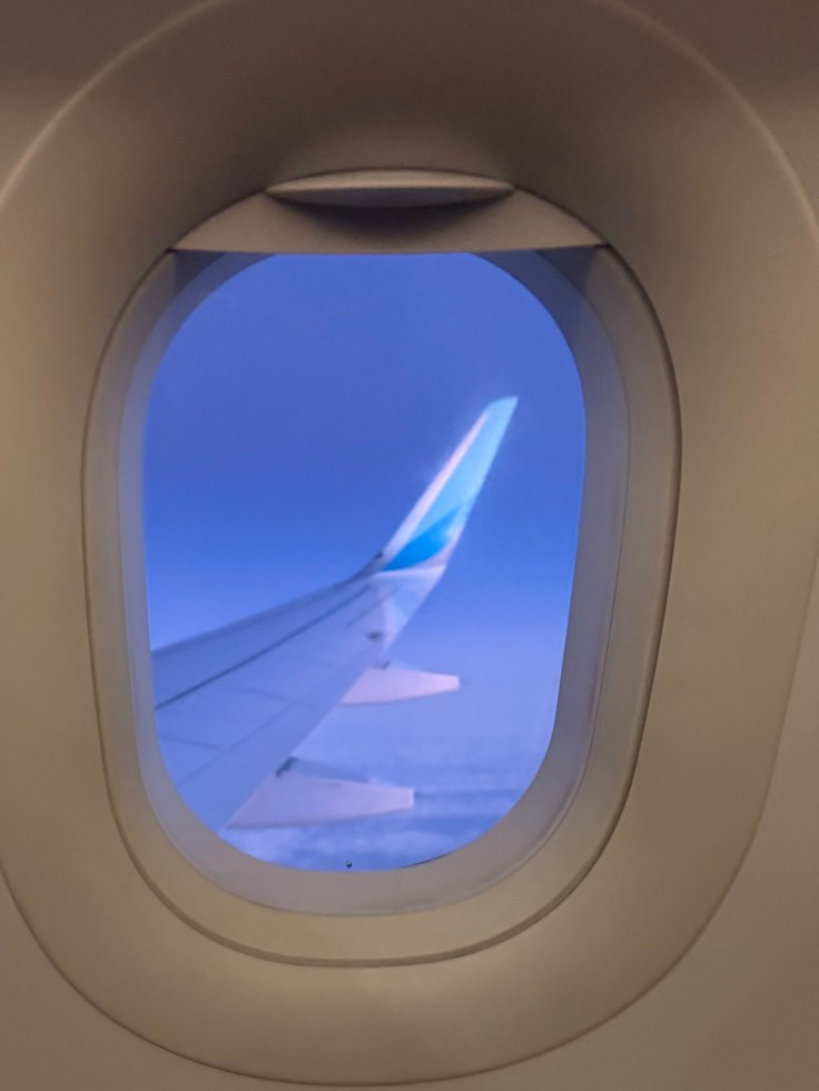 Aber auch das war noch nicht das letzte Highlight des Tages. Denn anschließend ging es stinkend wie ein neuer Duft von „More geht nicht mehr“ in den Flieger. Im Nachhinein bin ich ja froh, dass ich alle anderen Düfte um mich herum übertrumpfte. Denn kaum hoben wir ab, wurde Georg wieder blass und wir testeten die Funktionsweise und Aufnahmekapazität der schon immer bewunderten Papiertütchen.