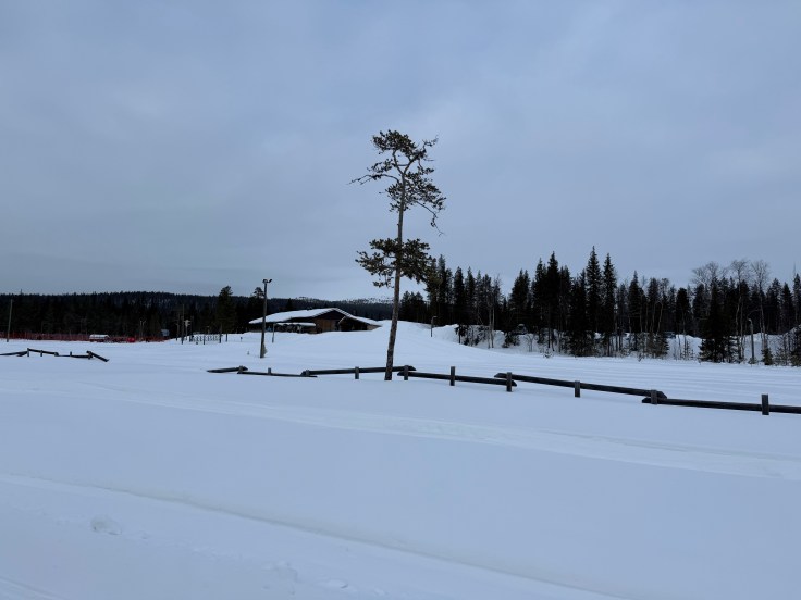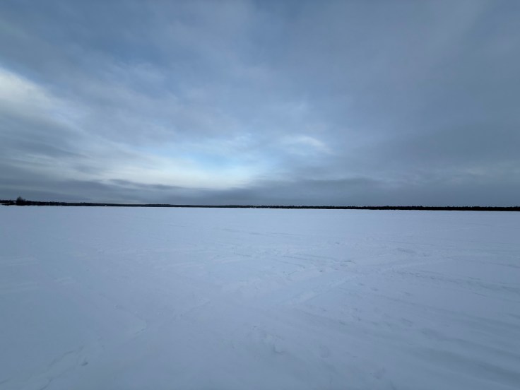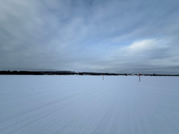 Ich bin ja grundsätzlich jemand, der kein Abenteuer scheut. Und so ließ ich mich auch auf das heutige ein, ohne Angstschweiß zu produzieren. Doch eigentlich habe ich fast überhaupt nichts von der Fahrt mitbekommen, denn dank Gesichtsmaske, Helm und Brille beschlug alles im Sichtbereich und ich fuhr blind mit. Hab sicherheitshalber gelegentlich ein Video gemacht, um später mal zu sehen, wo wir so lang gefahren sind. Und laut Hörensagen war es das wahre Winterwonderland. Alles weiß, kaum Zivilisation und unendliche Weiten. Sind sogar über einen See gefahren, den ich nicht mal als solch einen wahrgenommen habe. Sah aus wie ein riesiges freies Fussballfeld nur ohne Tore und Fussballer. Aber unter uns war wohl ein See, wie wir bei einem kurzen Tee-Keks-Stop erfuhren.