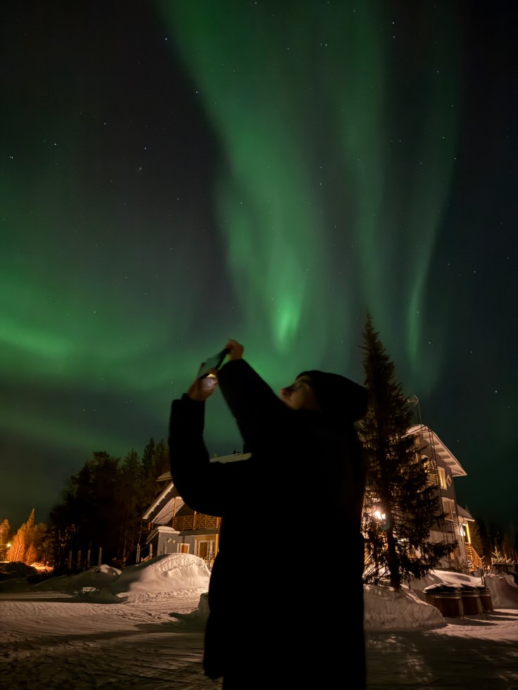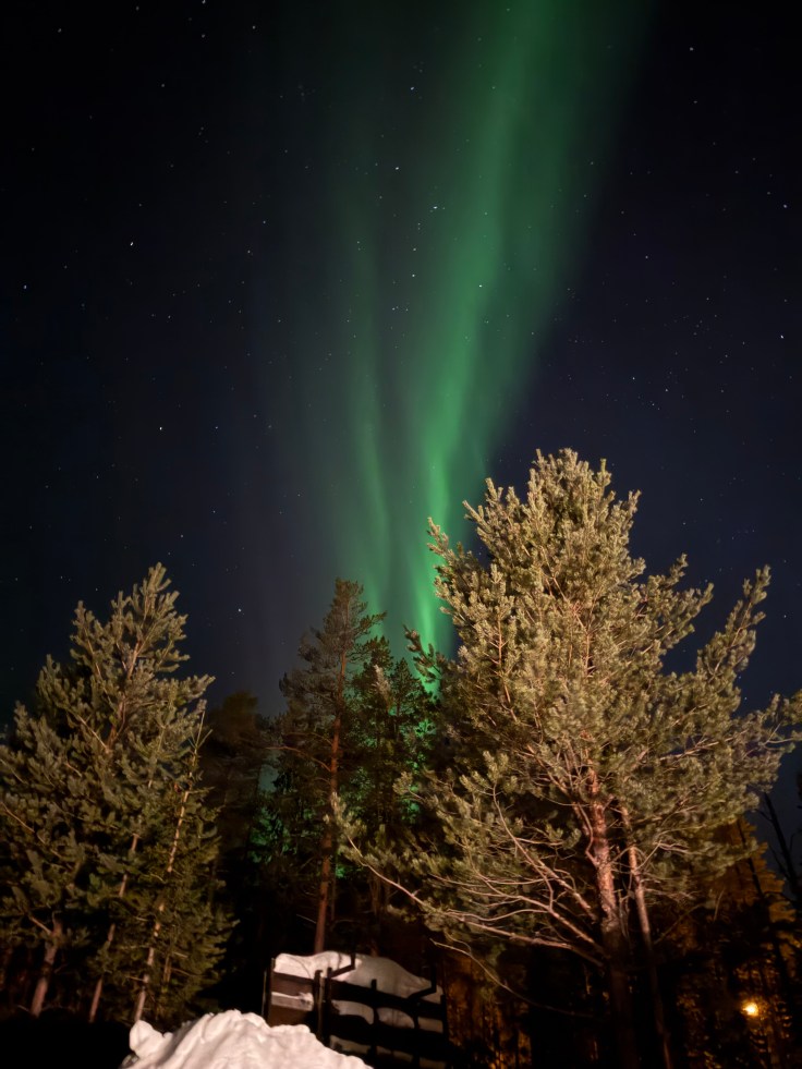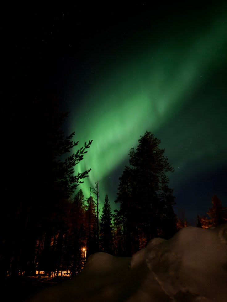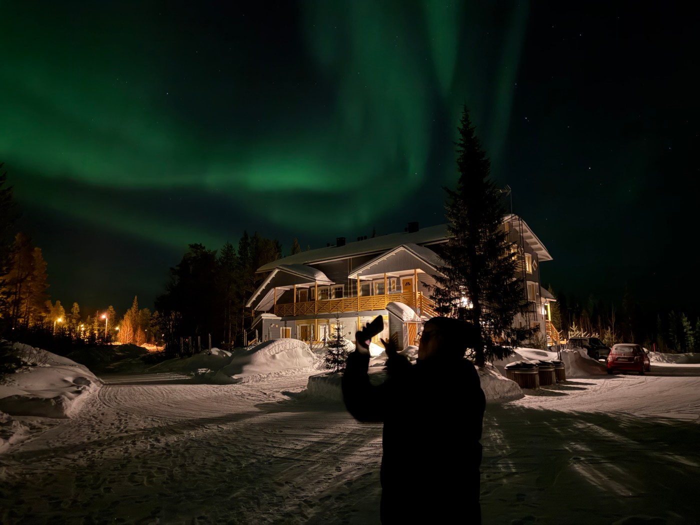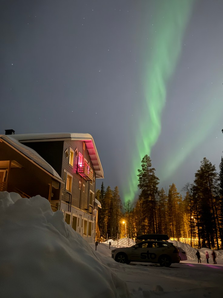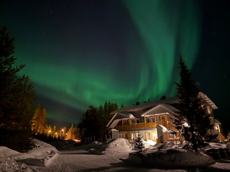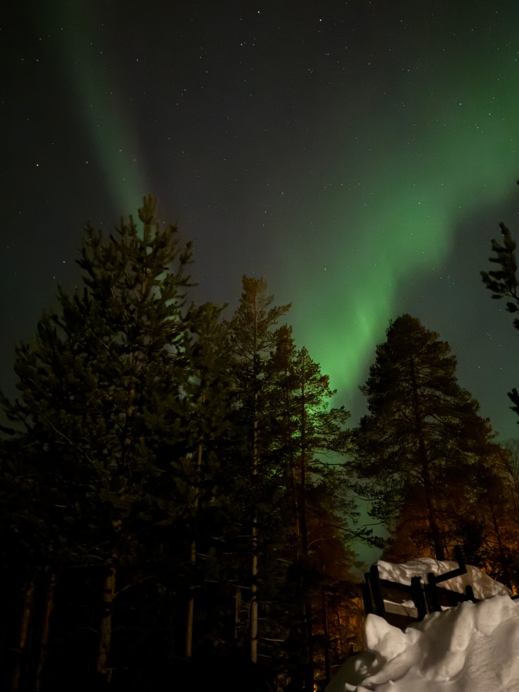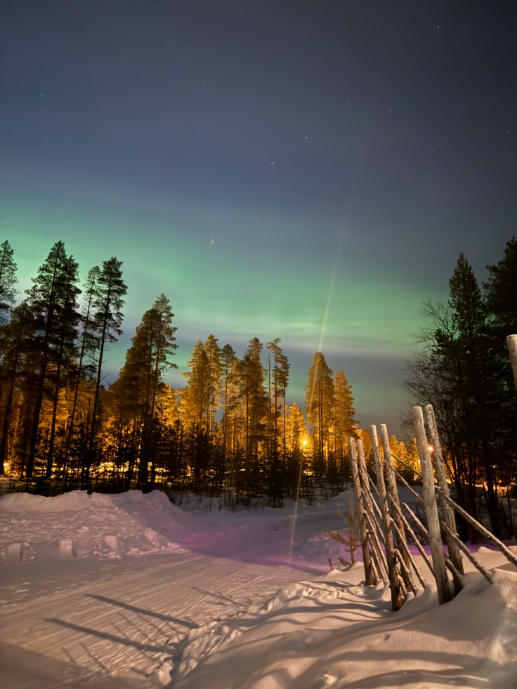 Und da waren sie…..DIE NORDLICHTER….wie sie schöner nicht hätten leuchten können. Wo ich gestern im Flugzeug noch einen Hauch von einem grünen Band gesehen hatte, donnerte es heute förmlich ein Feuerwerk über den Himmel. Selbst mit bloßem Auge konnte ich sehen, was am Himmel los war. Jedoch mit dem Handy, war es ein wahres Farbenspiel. Alle Bilder sind unbearbeitet und können doch nicht rüber bringen, wie unglaublich diese Jungfernfahrt der Nordlichter für uns war. Wäre mir nicht mittlerweile das Handtuch an den Beinhaaren angefroren, würde ich immer noch draußen im Schnee stehen und staunen. Das war ein echter Bucket-List-Moment für uns drei. Selbst Georg konnte sein Handy nicht mehr weglegen und spamt nun alle Großeltern mit Bildern zu. Genießt einfach mal mit…