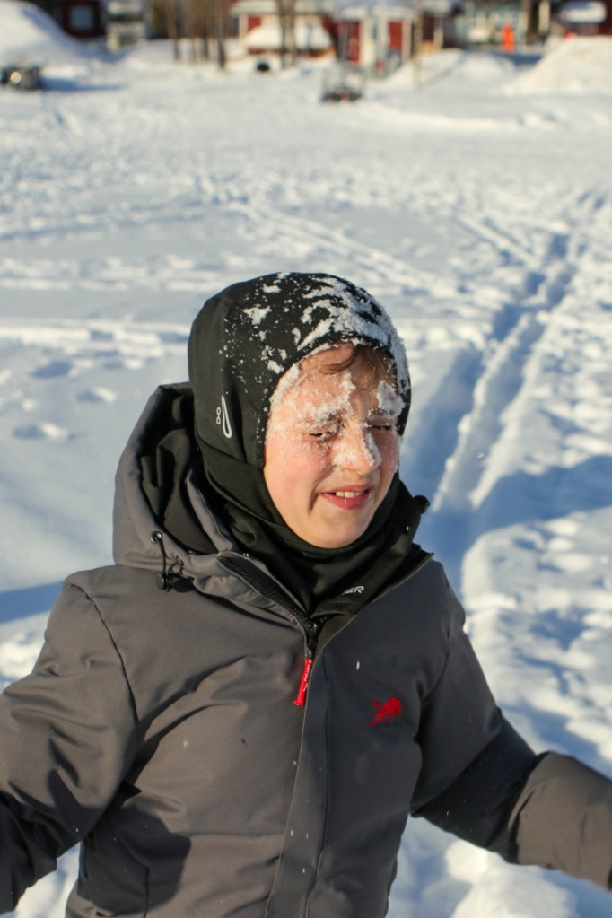Danach spazierten wir noch über den zugefrorenen und eingeschneiten See und ich probierte einen Trend von Insta – den ich kürzlich gesehen hatte – mit Sohnemann aus. Man nehme seinen Kopf und ditscht ihn in den Schnee und erhält lustige Schneegesichter. Funktioniert auch, wenn man danach den Schnee im Gesicht hat.