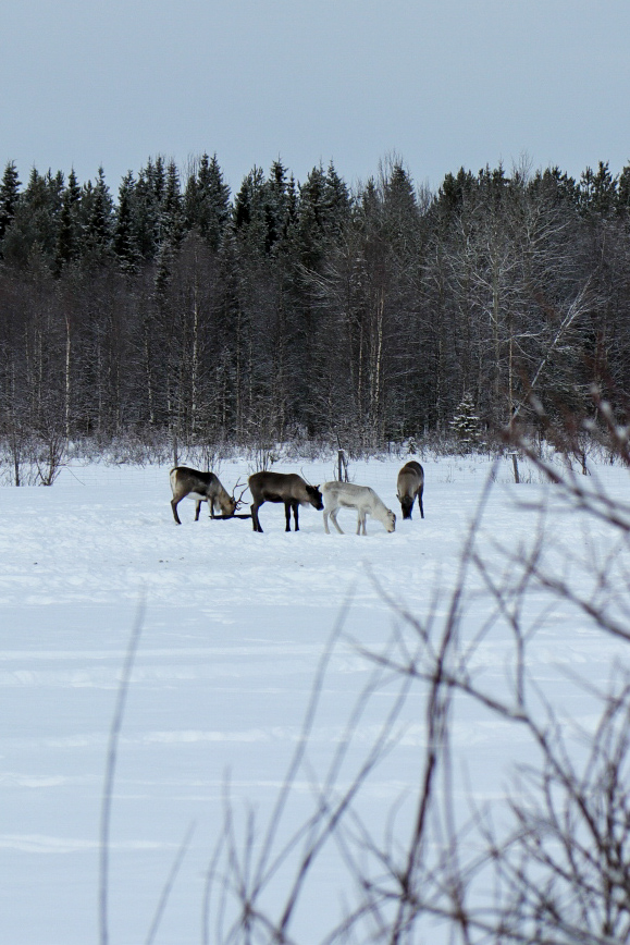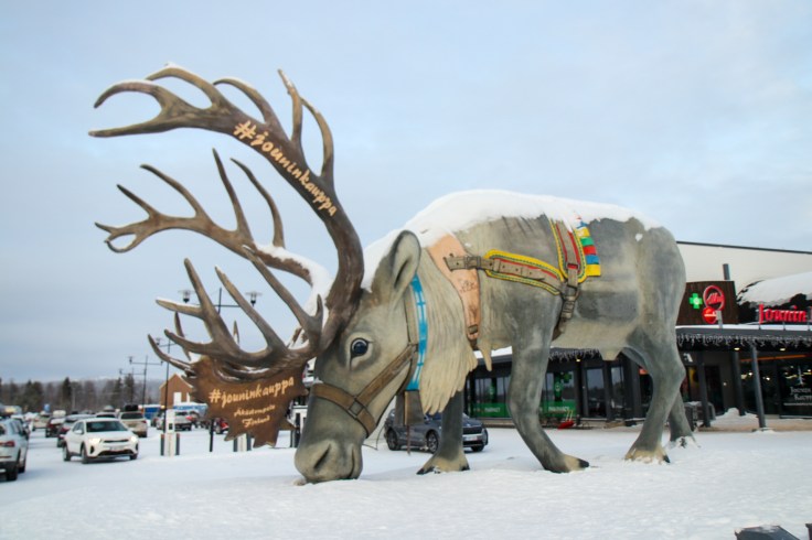 Weiter ging es auf die andere Seite vom Ylläs, wo wir auch endlich die ersten Rentierherden im Gehege entdeckten. Falls sie jemand nicht auf Anhieb sieht, haben die Finnen noch ein überdimensioniertes Rentier auf den Parkplatz gestellt. Erinnert mich irgendwie an Amerika, wo auf jedem Parkplatz entlang der Highways irgendetwas überdimensioniertes stand. Nur so konnten Tankstellen und Diners mit Hilfe von Dinosauriern oder ähnlichem auf sich aufmerksam machen. Hier hätte die Natur zum auf sich aufmerksam machen schon gereicht.