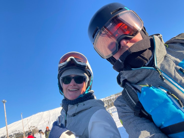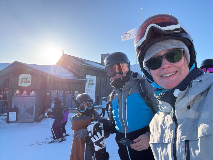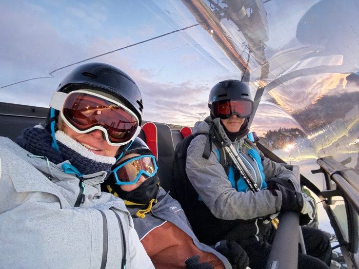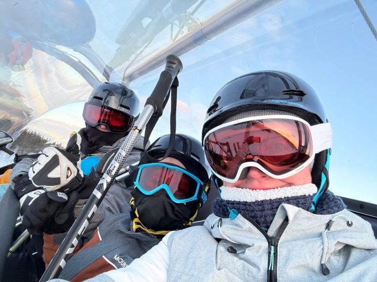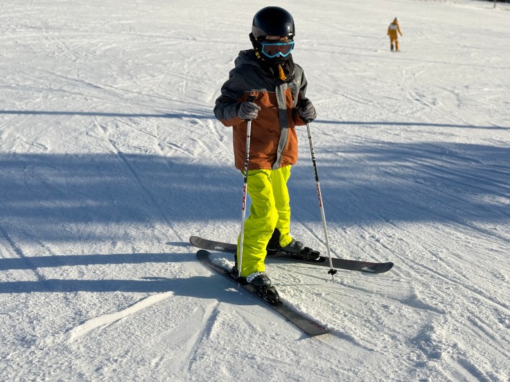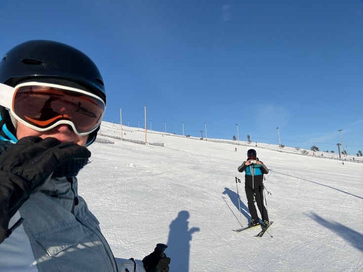 Dieses Mal mussten wir uns ja alles ausleihen, aber der Leihvorgang dauerte nur Minuten. Das aufwändigste dabei war mal wieder die Tortur, unsere Waden und Füße in die Skischuhe zu pressen. Danach habe ich meistens schon mal die Schnauze voll und meine erste Hitzephase hinter mir.