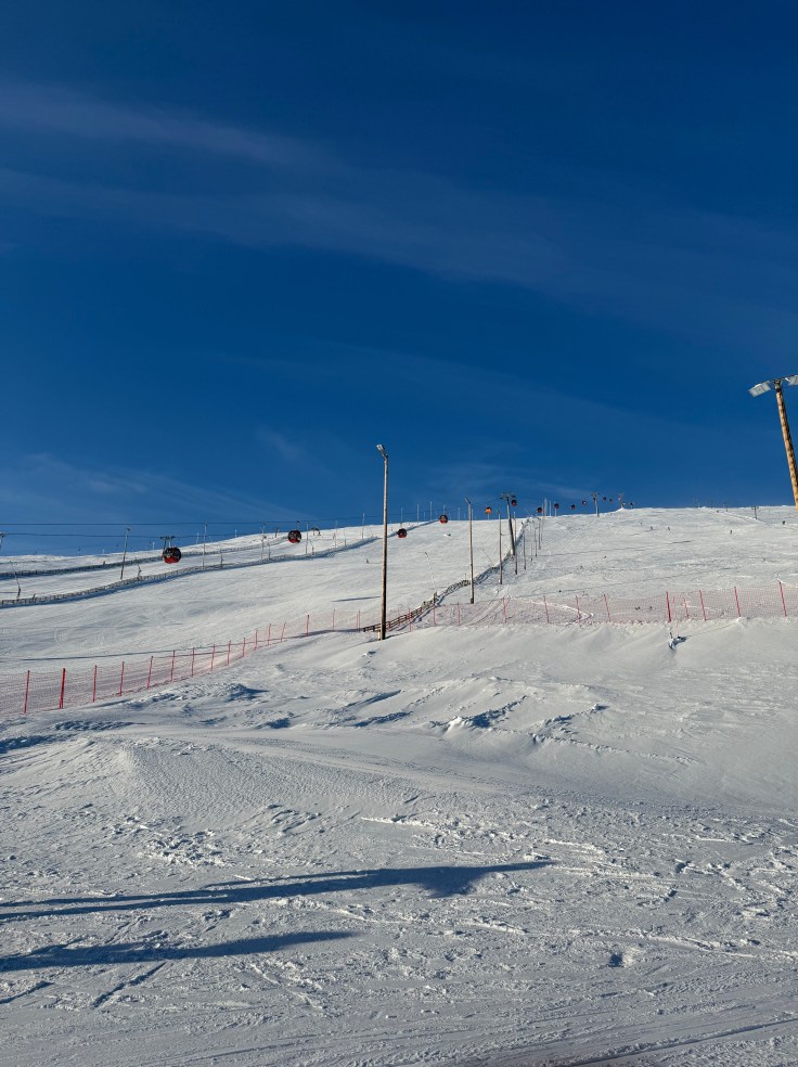 Doch das beste kam noch danach, denn hier sind die Pisten noch nach Sonnenuntergang geöffnet. Riesige Strahler erhellen fast jede Strecke rund um den Berg. Die Lifte fahren bis 19 Uhr unermüdlich in die Dunkelheit und so erlebten wir ganz besondere Abfahrten, wie wir sie noch nicht hatten. Eine der Schlepplifte war sogar in einer beleuchteten Röhre und schoß dich gen Hang.