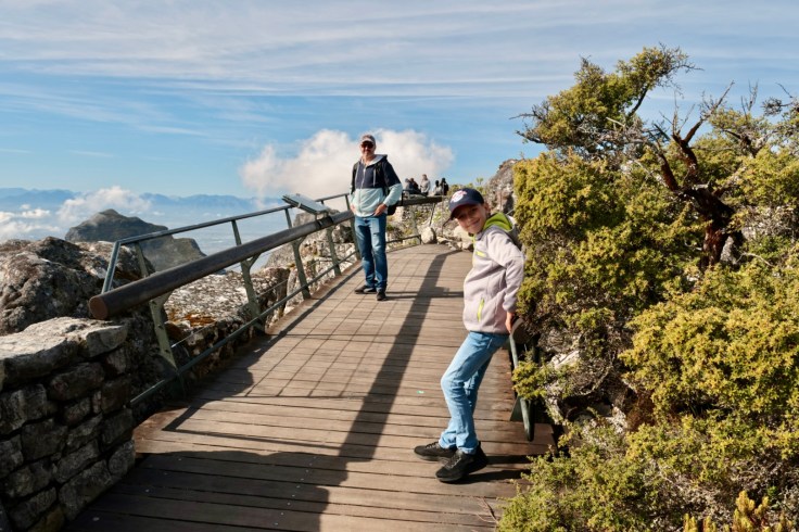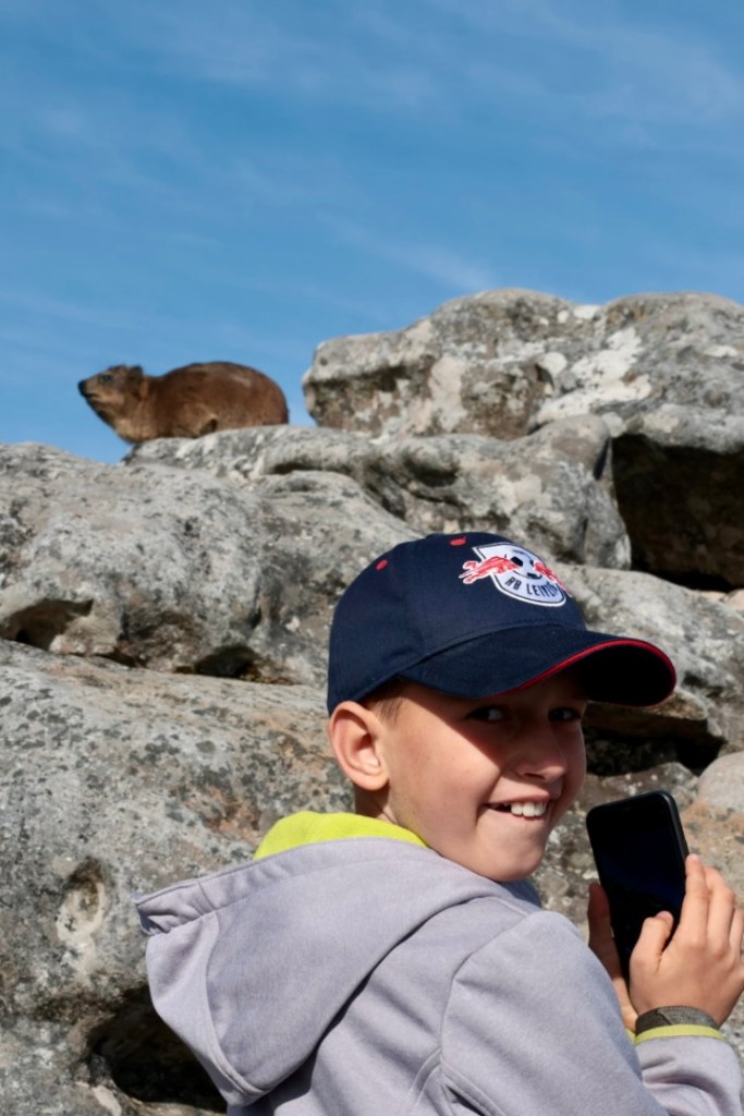 Irgendwann zog über die Tafel dann die tägliche weiße Tischdecke und es war Schluss mit der Aussicht. Also blieb uns nichts anderes als weiter Klippschliefer zu fotografieren und irgendwann die Fahrt nach unten anzutreten, solange man noch die Gondel finden konnte. Unten angekommen haben wir uns erst einmal hervorragend gestärkt, bevor es wieder in den roten Bus ging.