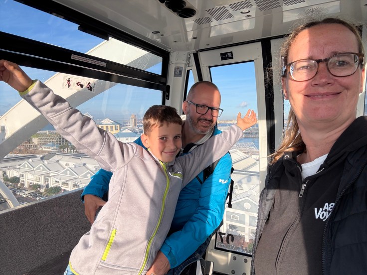 Und man kann den Tafelberg anvisieren. Für mich zum zweiten Mal in meinem recht kurzen Leben. Allerdings dieses Mal mit blauen Himmel, Sonnenschein und damit der echten Chance, dass ich ruff komme auf den Tafelberg. Denn beim letzten Mal fuhr die Seilbahn nicht.