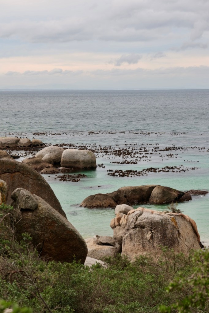 Nach dieser Pinguin-Orgie sahen wir auch noch Klippschliefer, die bis hoch in die Büsche kraxelten, um sich leckere Beeren zu schnappen. Und wir sahen nun endlich auch den unendlich schönen Blick auf das türkisfarbene Meer. Vorher war mein inneres Auge auf Zoom Richtung Pinguine eingestellt. Aber nun fiel auf, an welch wunderschönem Ort wir hier standen.