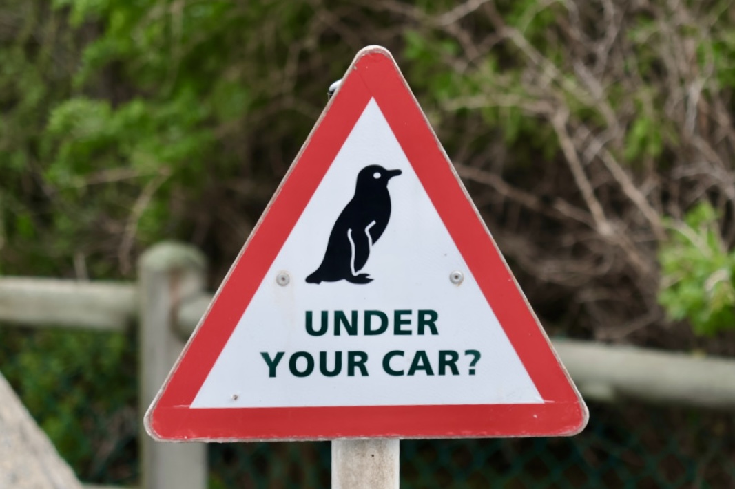 Auf dem Weg zurück zum Parkplatz fielen uns die Warnschilder vor chillenden Pinguinen auf und ich war wirklich versucht mich auf den Boden zu legen, bevor wir unser Auto starteten. Schließlich will ich nicht am Tod solch eines süßen Tierchens Schuld sein.