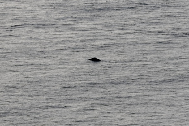 Apropos gute Hoffnung, wenn wir hier schon auf einem Aussichtspunkt standen, kann man ja mal sicherheitshalber das große Objektiv rausholen und die Whalewatcher-Augen aktivieren. Und tatsächlich, ihr werdet es nicht glauben, entdeckten wir (also ich) einen Wal direkt vor dem Kap. Allerdings war es eher ein sehr schüchterner Wal, der nur gelegentlich an der Wasseroberfläche trieb. Weder schlug er Pirouetten, noch jagte er wild, noch zeigte er aufreizend seine Schwanzflosse. Aber dennoch können wir nun behaupten, wir haben unseren ersten Wal gesehen.