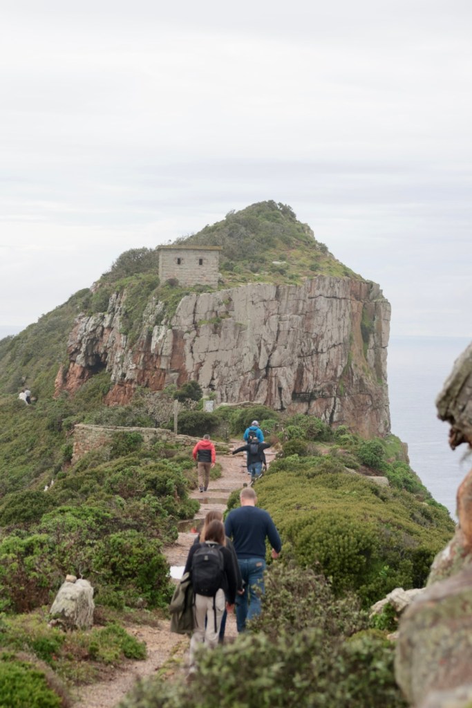 Doch irgendwann kommt man auch in Mordor zum Turm und wir halt zum Leuchtturm am Ende des Kap’s der Guten Hoffnung. Wie Frodo und Sam wagten wir auch den Aufstieg auf den Schicksalsberg und jetzt höre ich mal auf mit den Vergleichen, sonst muss ich mich oder den Ring zum Schluss noch die Klippen runter werfen. Das ist natürlich nicht passiert. Sondern wir wanderten den Berg hinauf zum Leuchtturm, entdeckten ganz viel Pudel-aa, oder wie wirklich Wissende sagen würden: Pavian-Kacke. Ist übrigens zu einem Running-Gag geworden, den Swen nun bei jeder Gelegenheit um die Ohren gehauen bekommt. Außerdem entdeckten wir irgendwelche Böcke oder ähnliches, die am Hang weideten und nicht wie Pudel aussahen. Genauer kann ich sie aber nicht beschreiben, da sie einfach zu weit weg waren.