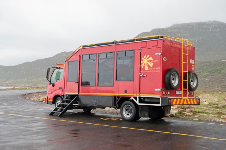 Auf dem Weg dahin berichtete ich noch davon, dass ich vor 18 Jahren genau hier meine ersten Strauße gesehen habe, nur um festzustellen, dass diese Strauße immer noch hier grasen. Angesichts der Tatsache, dass diese Vögel tatsächlich bis zu 40 Jahre alt werden können, ist es nicht unwahrscheinlich, dass es echt die gleichen Strauße von damals sind. Noch etwas machte mein Deja Vu dann für mich endgültig perfekt. Denn in der Wendeschleife am Kap stand „The Big Red Truck“ und mit genau solch einem Auto war ich vor 18 Jahren hier. So viele Erinnerungen, die ich damit verbinde und die mich lächeln lassen.