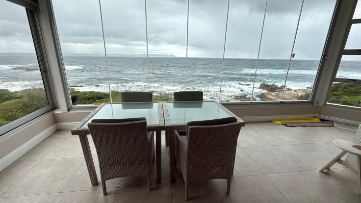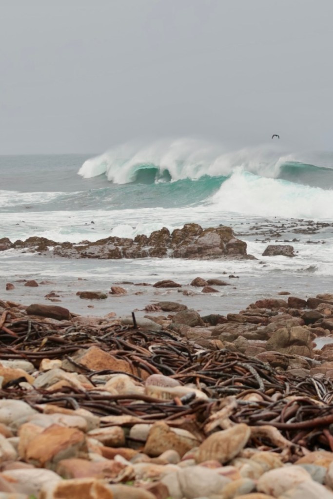 Denn nun stehen zwei Nächte in Hermanus an und dank dem Wetter bleibt uns förmlich nichts anderes übrig, als einfach die Aussicht aus unserer traumhaften Wohnung zu genießen. Wir schauen aufs Meer, beobachten die Urgewalten und hoffen von Land aus, Wale zu sehen. Aber mal ganz ehrlich, mit diesem Ausblick ist die Gefahr verdammt groß, dass ich mich für die nächsten Jahre genau hier einschließe und Bücher über Bücher schreibe. Dieses Meeresrauschen und dieser Ausblick machen mich zum Suchti. Falls also das Unwetter für zerstörte Straßen sorgt, wisst ihr wo ihr mich finden könnt.