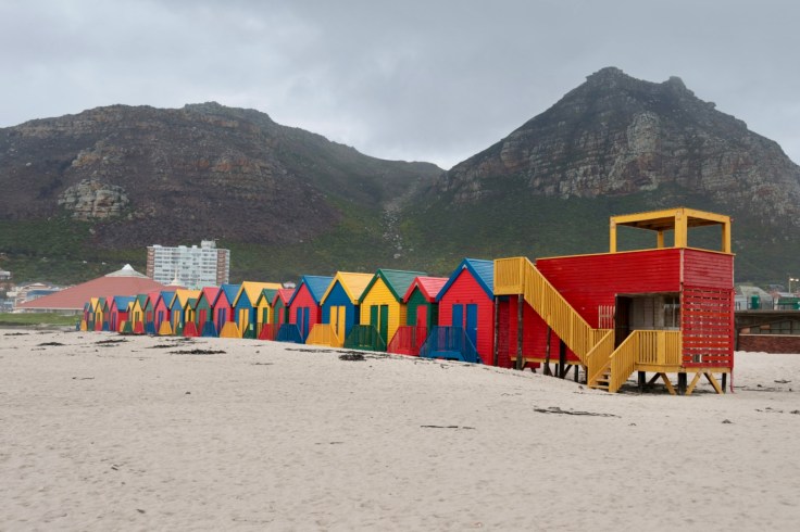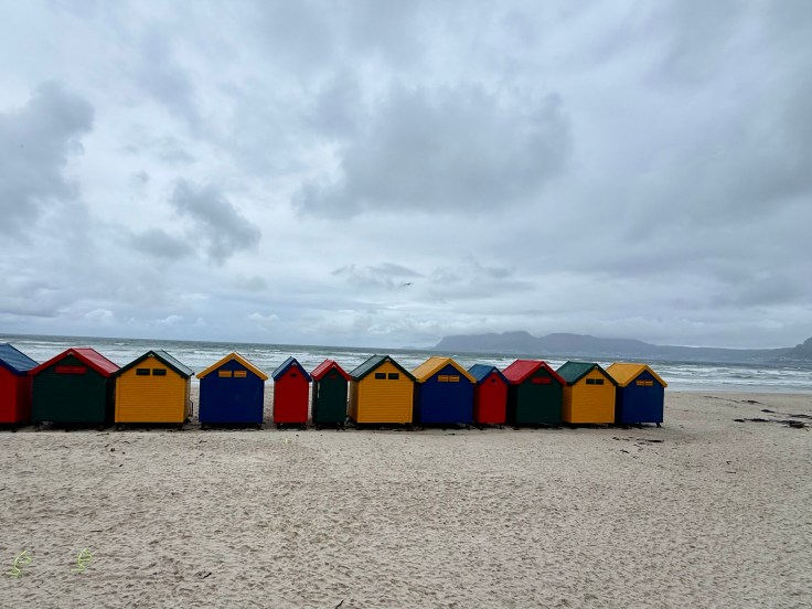 Losgefahren sind wir natürlich trotzdem, denn von wo aus wir in den Regen schauen ist nun auch egal. Und so eine Regenfahrt schließt jedenfalls nicht unbedingt kleine Fotostopps aus. Und so musste mein Mann kurz in Muizenberg parken, damit ich die berühmten Fotomotiv-Strandhütten fotografieren konnte. Und ich finde, den Fotos sieht man das Schittwetter gar nicht an. Also hat sich der Stop gelohnt.