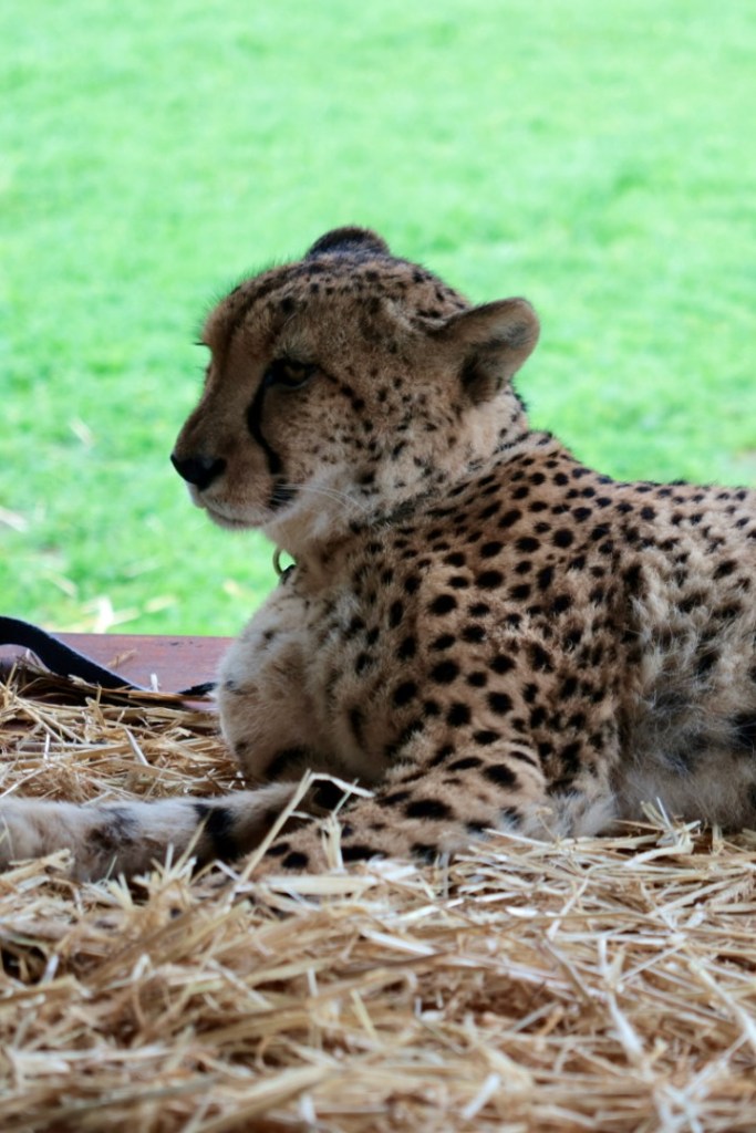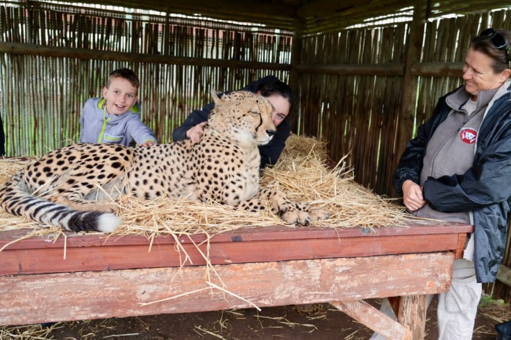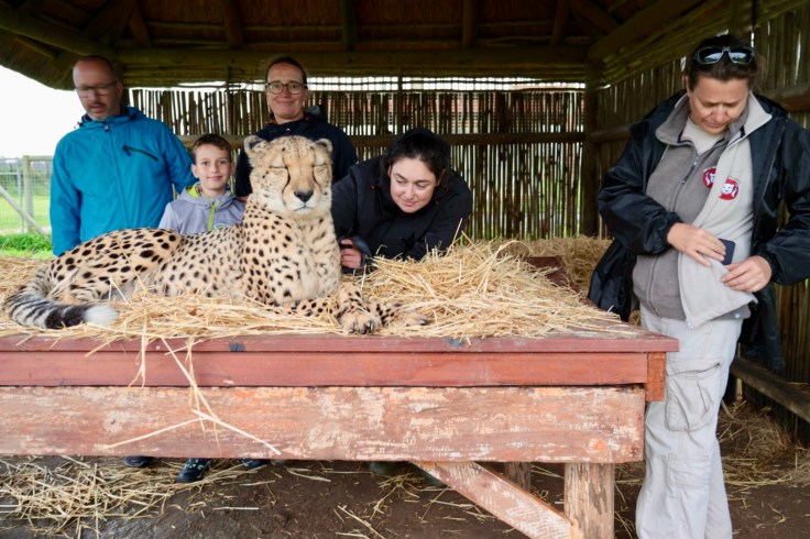 Aber der Tag sollte wirklich noch versöhnlich werden. Das Wetter sah immer noch nach Weltuntergang aus. Die See peitschte jede Welle gen Küste und der Regen fiel mal senkrecht und mal waagerecht. Aber Wetter vermiest uns nicht die Stimmung und so fuhren wir wieder über den Sir Lawry’s Pass nach Sommerset. Dort erwartete uns das Cheetah Outreach und damit unser Zusammentreffen mit echten Geparden. Und dort wurde ich so begrüßt bzw. so per WalkieTalkie angekündigt: „The VIP Daniela is here!“. Dass nenne ich mal eine gelungene Begrüßung, die ich somit allen ans Herz legen möchte, die von mir ein Lächeln sehen wollen. Eigentlich wurde ich überall auf dem Gelände des Cheetah Outreach „VIP Daniela“ genannt. Ich fand das äußerst zuvorkommend. Liegt aber leider nicht daran, dass ich hier schon stadtbekannt bin, sondern nur an der Tatsache, dass ich eine VIP-Tour mit reichlich Zeit bei den Geparden gebucht hatte.