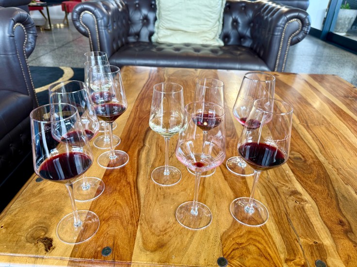 Und wir fanden etwas, denn Wein gibt es nicht nur um Stellenbosch, sondern eigentlich in der ganzen Kap-Region. Also suchten und fanden wir Benguela Cove, ein Weingut unweit von Hermanus. Dazu noch hoch ausgezeichnet und schickt eingerichtet. Was will man mehr, wenn man Durst hat. Also platzierten wir uns, outeten uns als Deutsche und wurden mit den Worten „aus Deutschland kommt der Gott des Weines!“ willkommen geheißen. Ich schätze allerdings, die meinten dieses Mal nicht VIP Daniela sondern den Bacchus. Wobei, nachdem ich alles gegeben habe bei der Verkostung des gesamten Weinlagers, bin ich mir da nicht mehr so sicher.