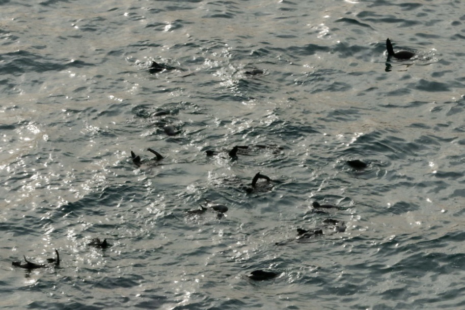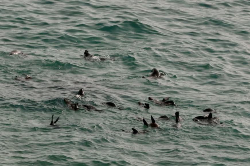 Und ich schätze, genau in solch einem Moment der Fussbodenbeobachtung tauchte der weiße Haie auf, lachte laut und tauchte wieder ab. Wir haben ihn auf jeden Fall nicht gesehen. Auch die Wale halten sich weiter vor uns versteckt. Dafür aber gab es unendlich viele Robben.