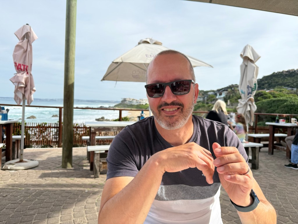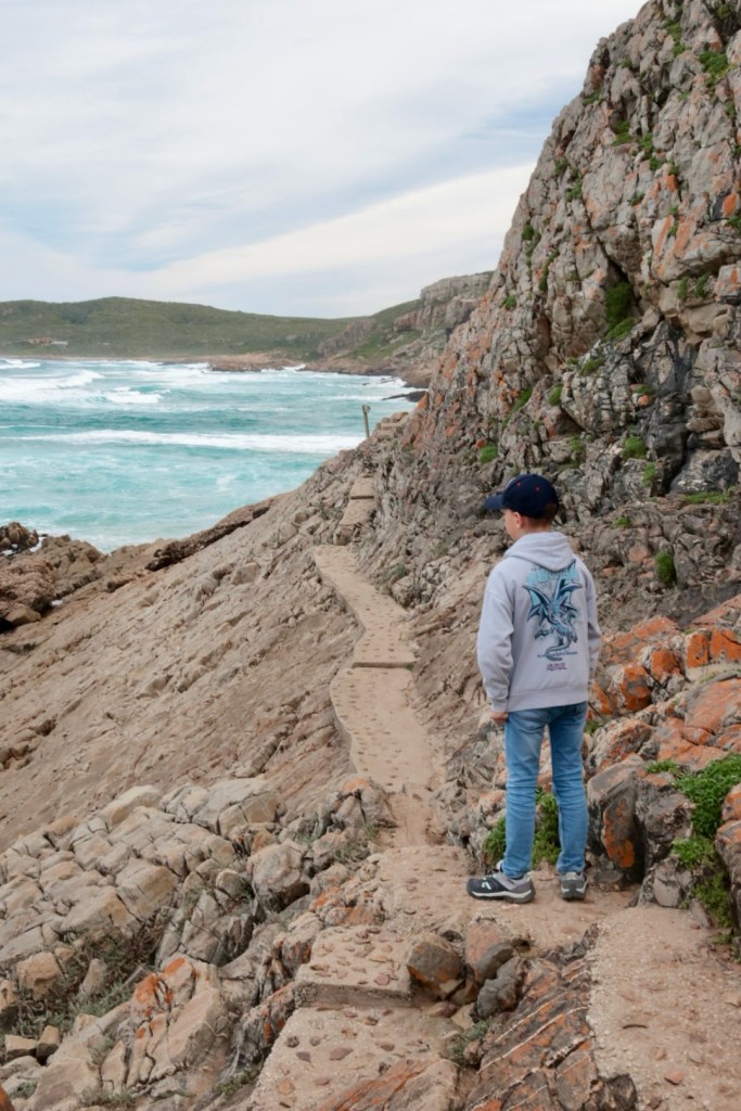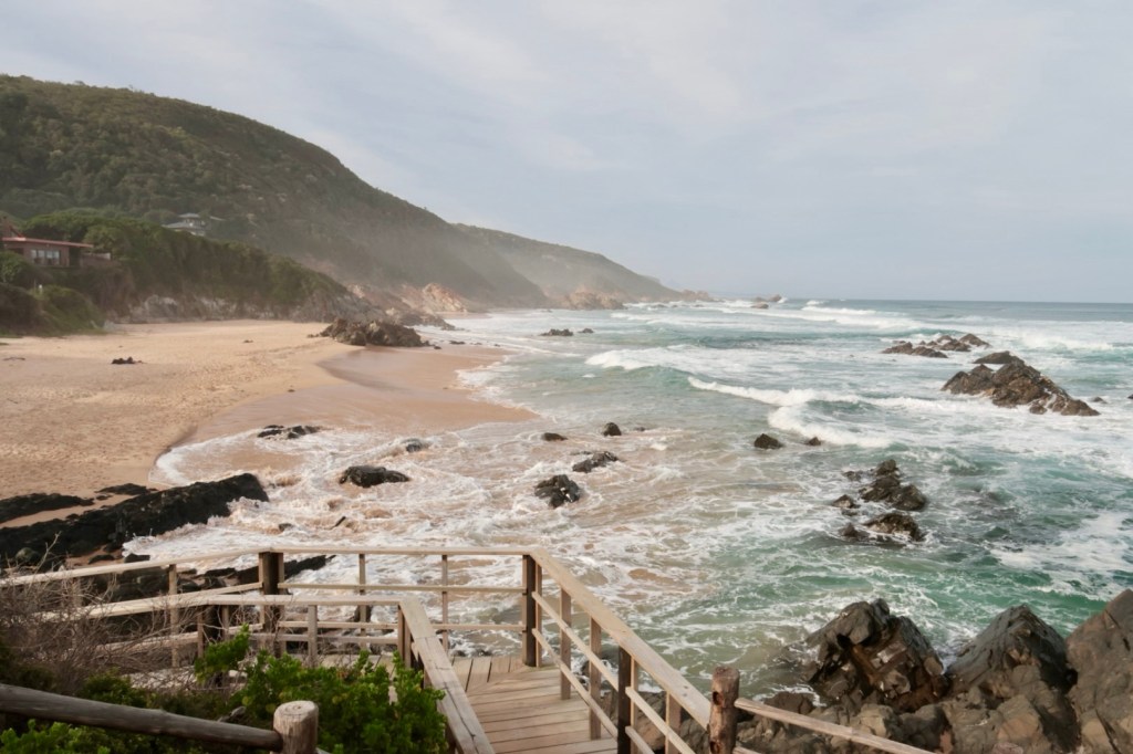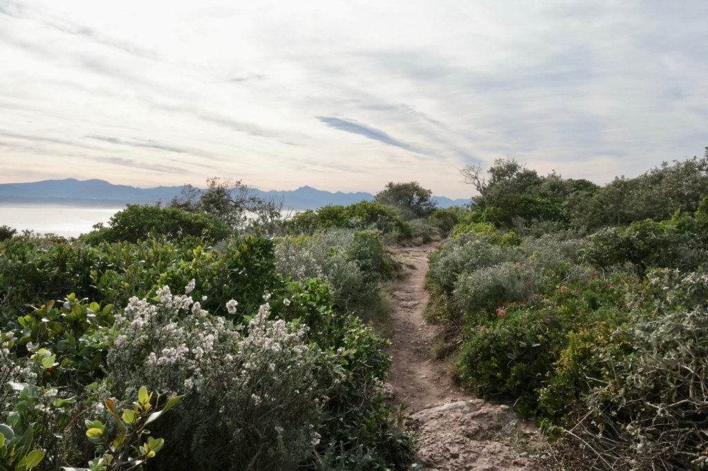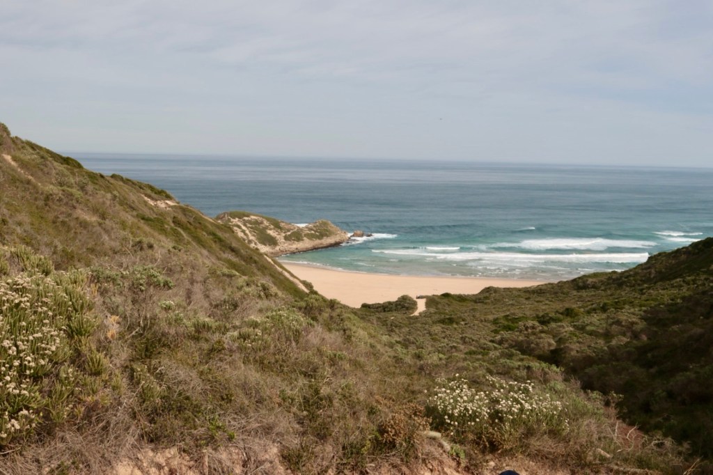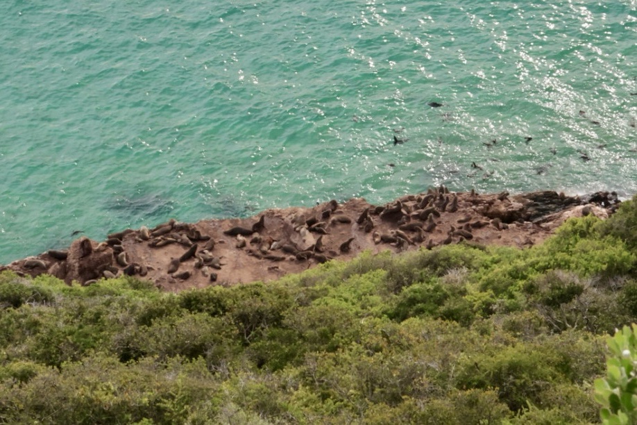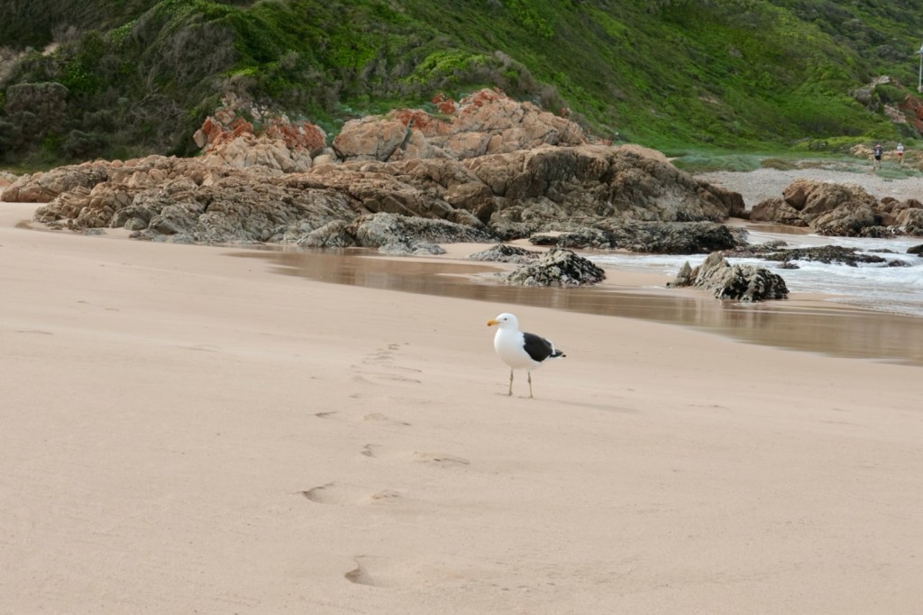 Kaum sahen wir den Strand von Plettenberg Bay, sahen wir auch schon die ersten Robben. Sie zogen durch die Wellen, als hätten sie ein Surfbrett unter dem Hintern und spielten in dem flachen Gewässer, als gäbe es weit und breit keine weißen Haie. Aber offensichtlich war das auch so, denn wir sahen nicht einen weißen Hai, obwohl wir förmlich ununterbrochen aufs Wasser starrten. Okay gelegentlich musste ich auch meine Augen auf dem Boden lassen, denn der Wanderweg war schön, schmal, immer an der Küste entlang. Für Wasserfallhinabstürzer wie mich eine potentielle Gefahrenquelle. Allerdings hatte ich Swen und Georg bei Urlaubsantritt versprechen müssen, dass ich so einen Scheiß dieses Mal auslasse.