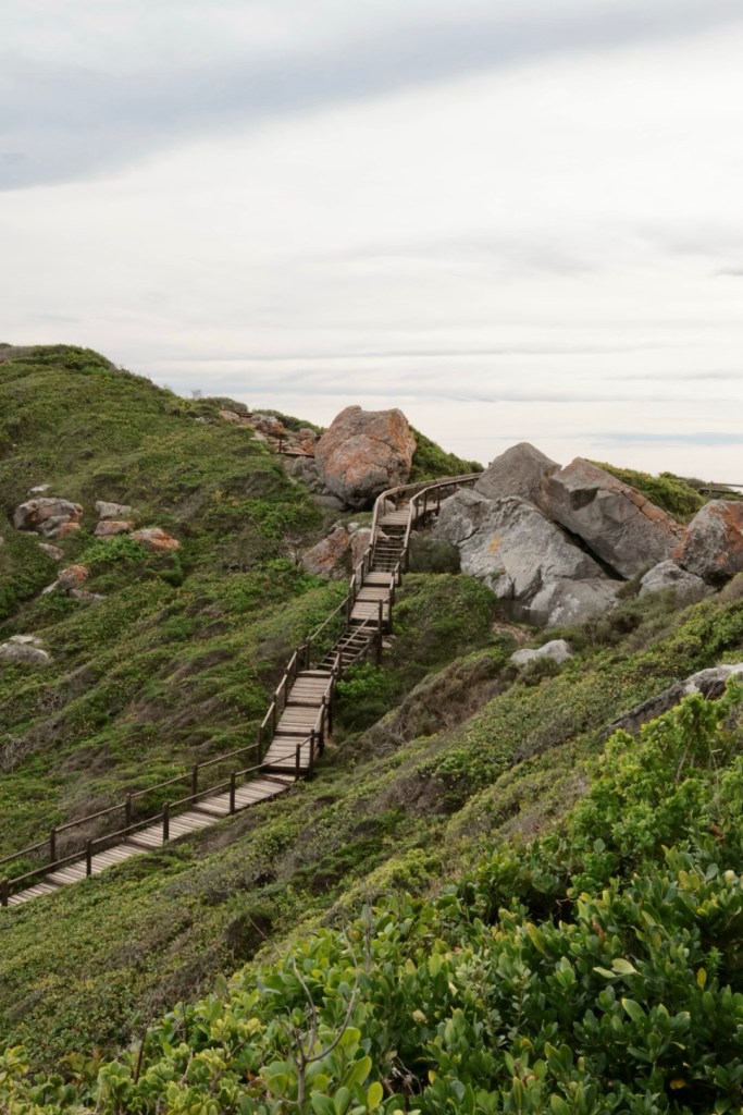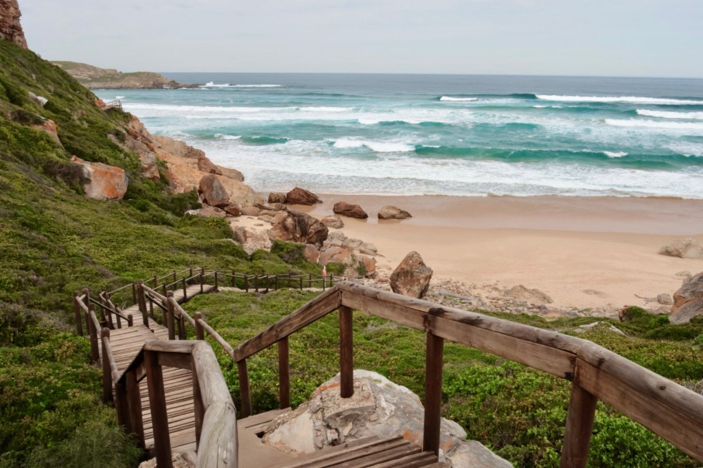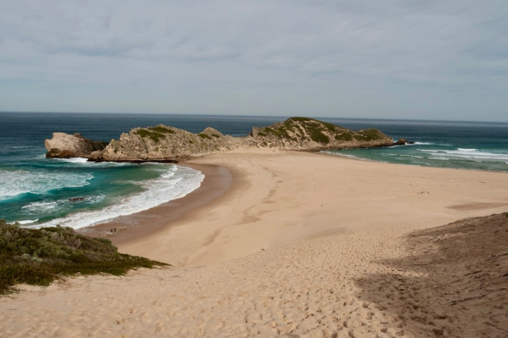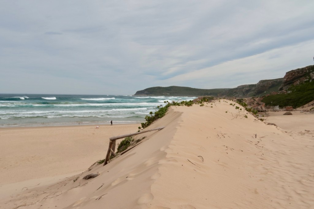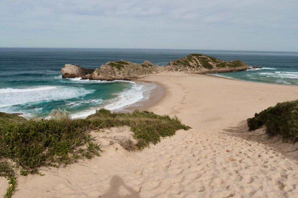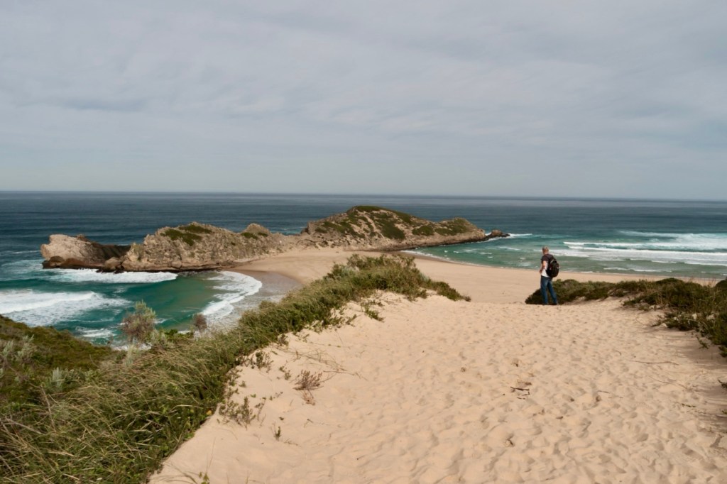 Heutiges Ziel war das Robberg Natur Reserve, unweit von Plettenberg Bay. Eine kleine Halbinsel mit zahlreichen Wanderwegen und unendlich vielen Chancen, die Wildtiere der Küste zu beobachten. Unser Bootsführer vom Vorabend hatte uns weiße Haie, Robben und eventuell auch Wale versprochen. Und mit dieser nicht gerade niedrigen Erwartungshaltung stiegen wir früh morgens um 8:30 Uhr ins Auto und fuhren die kurze Strecke an die nächste Bucht.