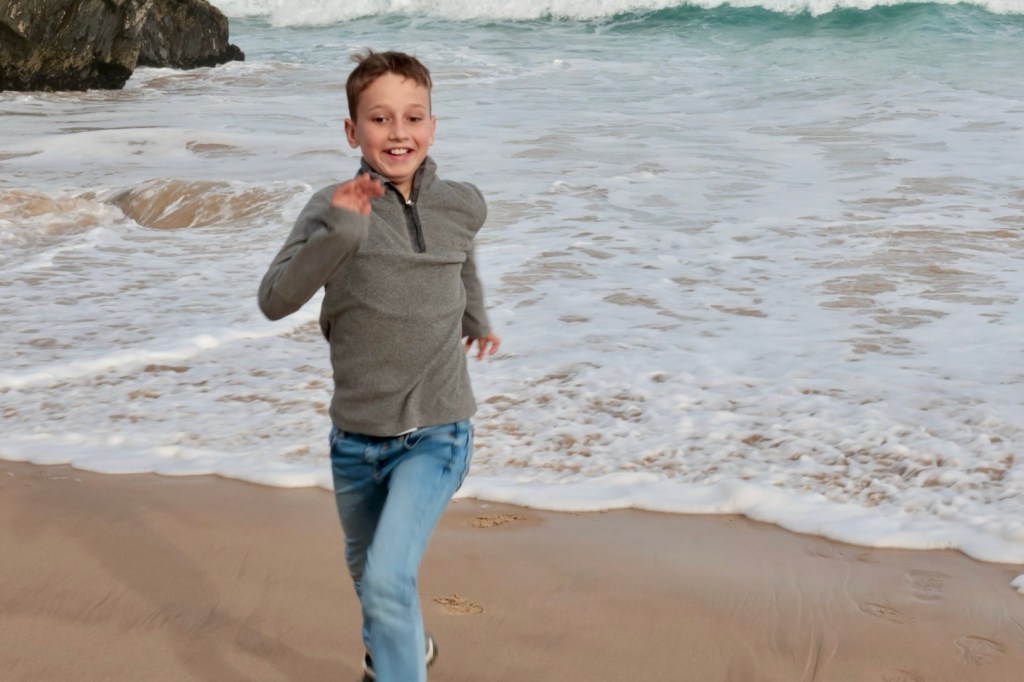 Zum Abschluss legten wir uns mit unseren dicken Bäuchen einfach nur noch an den Strand und schauten den Wellen zu und kämpften gegen den Mittagsschlaf. Nur Georg hatte den Kampf mit den Wellen aufgenommen. Wer ist wohl der Schnellere? Die Wetten laufen und ich lege schon mal Wechselklamotten bereit. Bei aller Liebe zum Sohn, zählt doch in erster Linie das Malheur im Bilde festzuhalten.