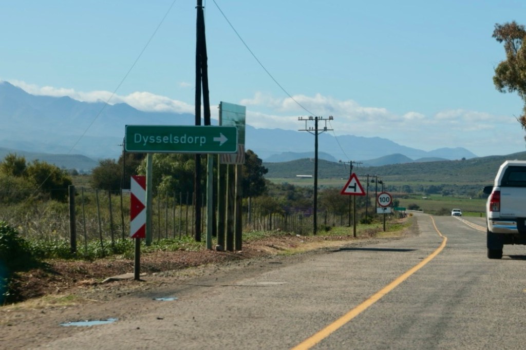 Kurz hinter dem Ortseingangsschild lachte sich unsere Tanknadel kaputt und machte aus einem gefahrenen Kilometer gleich mal 3-5 auf der Tankstandsanzeige. Lag vielleicht auch daran, dass wir über ein Bergmassiv hoch und nicht etwa runter fuhren. Bei  verbleibenden 100 km im Tank suchte ich dann schon langsam ziemlich hektisch nach der nächsten Tankstelle, die auf der Route sein sollte. Okay, noch 60 km Wegstrecke bis nach Willowmore sollten doch machbar sein, oder?