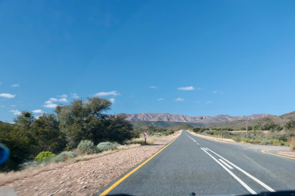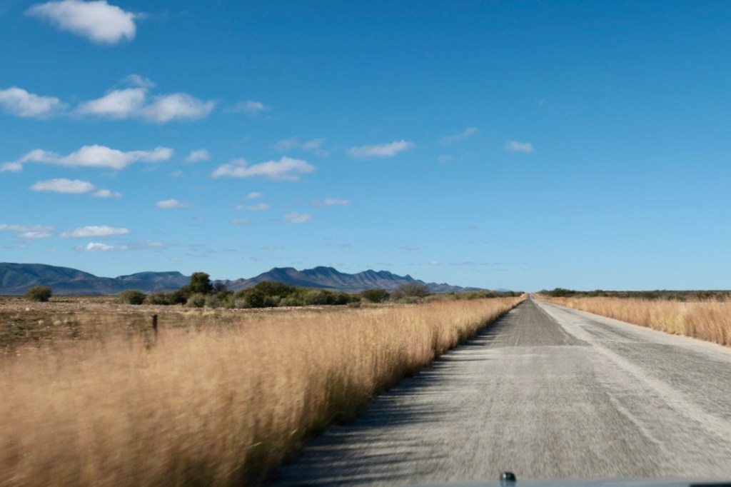 Stark erleichtert starteten wir nun die Weiterfahrt. Doch es wurde nicht besser, denn kurz hinter Willowmore mussten wir die Autobahn verlassen und wechselten auf die Landstraße. Nach fünf Kilometern wurde aus der zweispurigen Landstraße eine einspurige Plattenstraße, die nicht enden wollte. Ich kam mir vor wie auf der A11 zu DDR-Zeiten. Alle fünf Meter ein Dadumm inklusive Bandscheibenmassage. Das man hier die der Berechnung der Reisezeit zugrundeliegenden 120 km/h nicht fahren kann, ist eigentlich logisch. Bei 80 km/h verlor man schon die Kontrolle über alles und hatte das Gefühl gleich abzuheben.