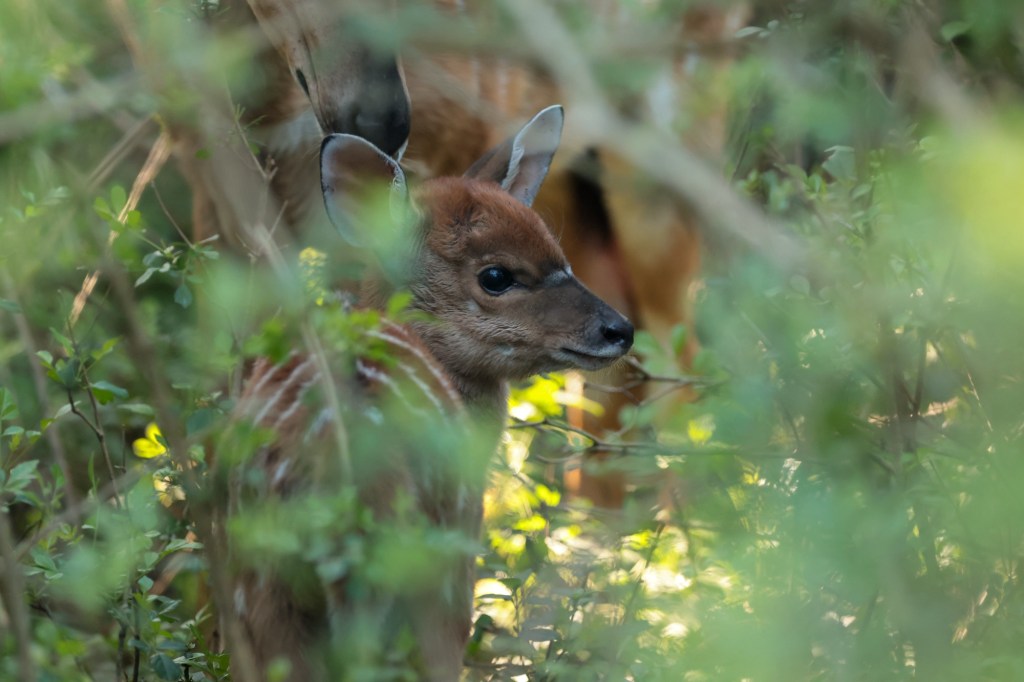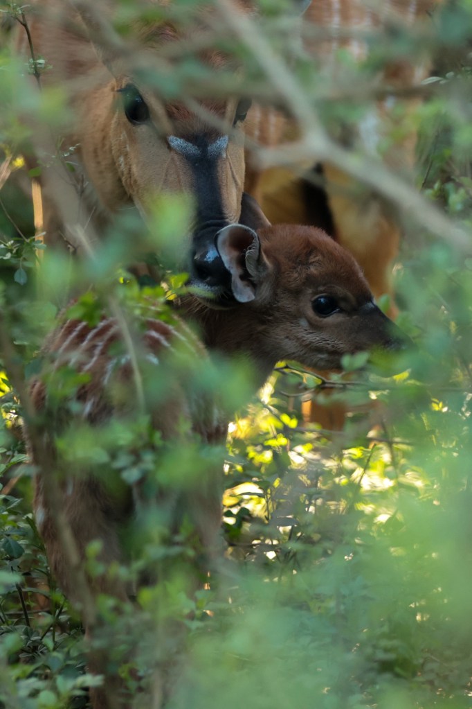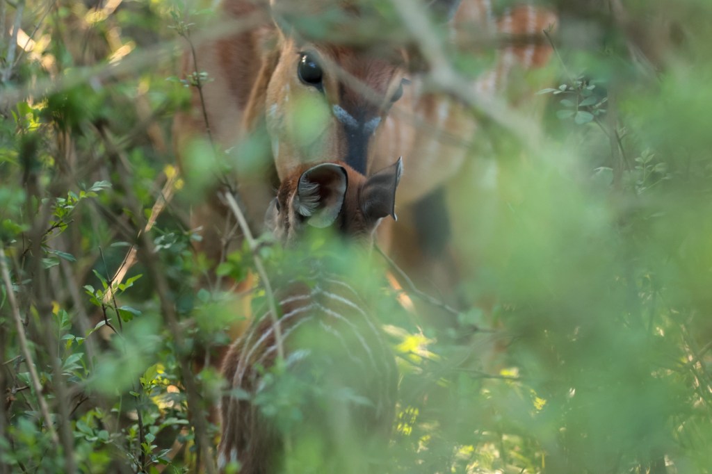 Zurück im Camp gab es wieder Frühstück und eine ganz süße Nyala-Familie direkt neben unserem Haus. Völlig unbeeindruckt standen Papa, Mama und das Junge im Gebüsch und sie beobachteten uns, während wir sie beobachteten. Georg ist mittlerweile – dank Forrest – Profi im Unterscheiden der verschiedenen Antilopenarten. Er lernt hier auf ein paar Safari‘s mehr als in Dutzenden Zoobesuchen. Ein kleiner Artenkundler ist er geworden.