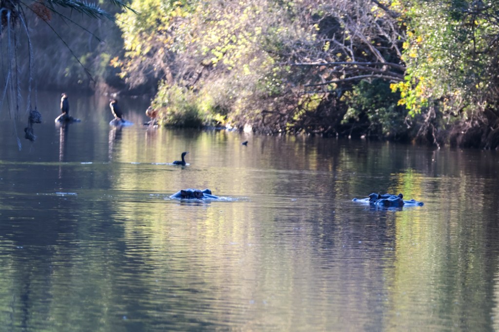 Doch auch Hippos oder Flusspferde standen noch auf unserer ungeschriebenen Liste. Forrest nahm auch diese Herausforderung an und führte uns an einen Teil des Flusslaufes, den Monet nicht schöner hätte malen können. Bei der Schönheit gerieten die vier sichtbaren Nasenlöcher fast in Vergessenheit und ich versuchte mit meiner Kamera Gemälde zu zeichnen.