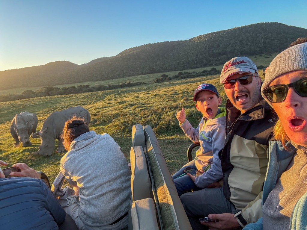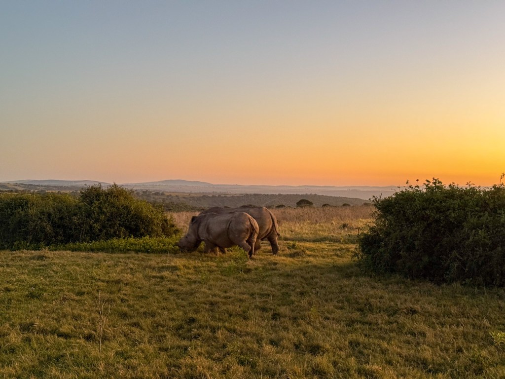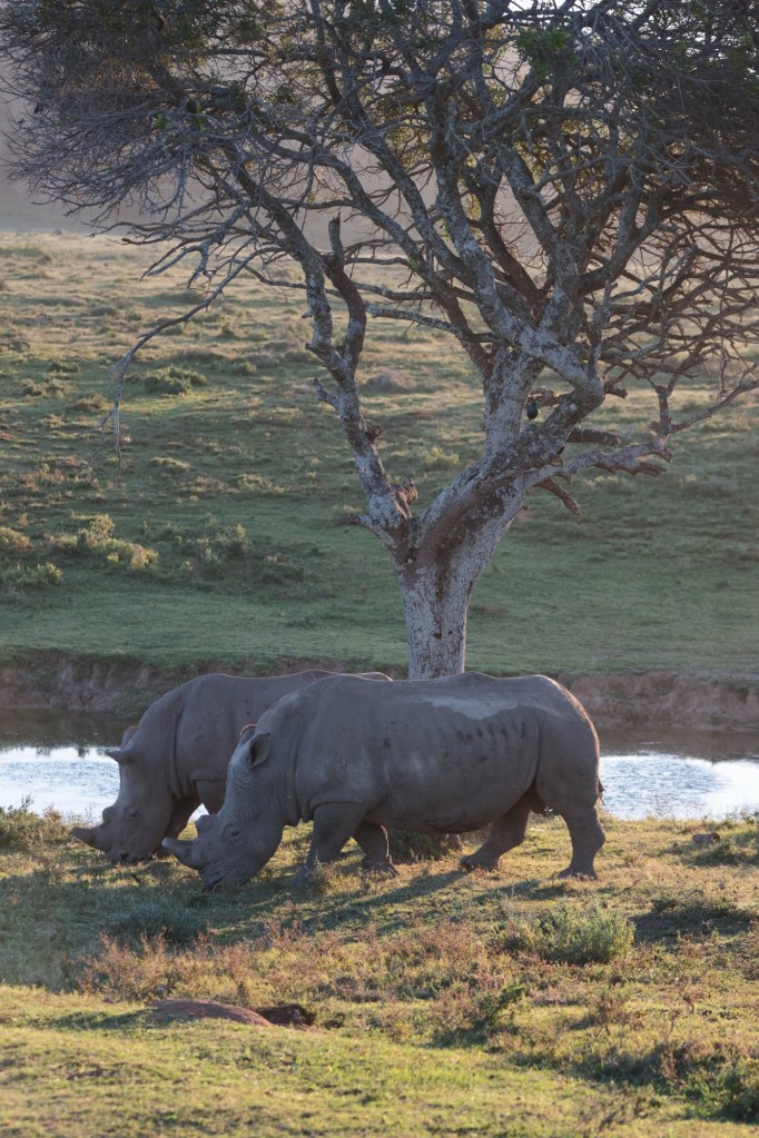 Was fehlt uns denn noch zum vollendeten Safari-Glück? Nashörner, Hippos und ein Leopard. Leopard wird schwierig, da man nie genau weiß, wieviele im Park leben. Irgendetwas zwischen Null und fünf. Forrest nahm deshalb die anderen Tierchen als direkte Zielangabe an und steuerte in einen neuen Teil des riesigen Parks von Kariega.