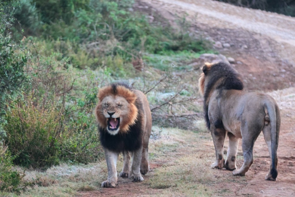 Tja und warum sollte man so einen Safarimorgen anders als mit Löwen beginnen? Gibt keinen Grund und so sichteten wir als erstes ein schon agiles Männerduo.