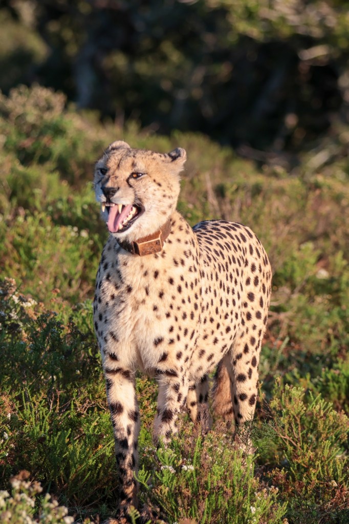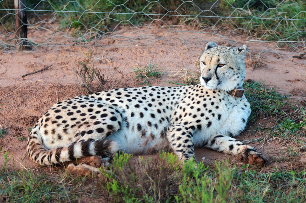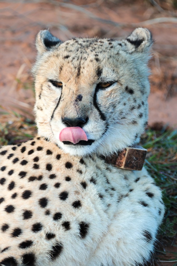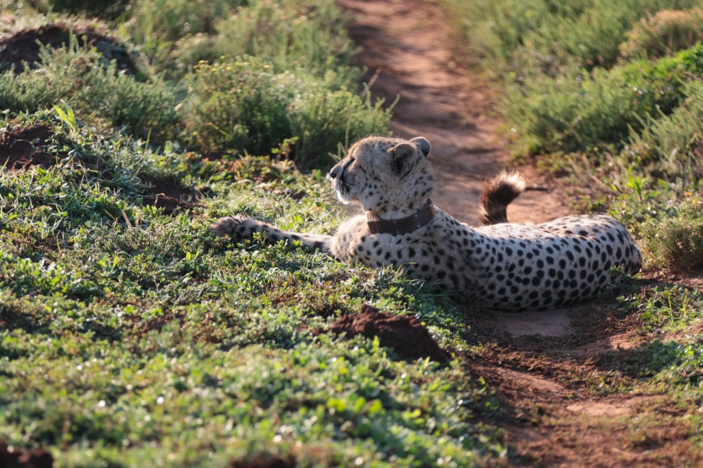 Und ja, die Geparden hier tragen noch einen Tracker. Allerdings nicht damit sie Forrest schneller für uns findet, sondern dass man sie für den Falle der Flucht wiederfindet. In den ersten 3 Jahren nach Einzug der Tiere in den Park ist solch ein Tracker Pflicht, denn es kommt regelmäßig vor, dass die Tiere, egal ob Löwe, Gepard oder Leopard, wieder ausbüchsen.