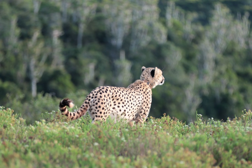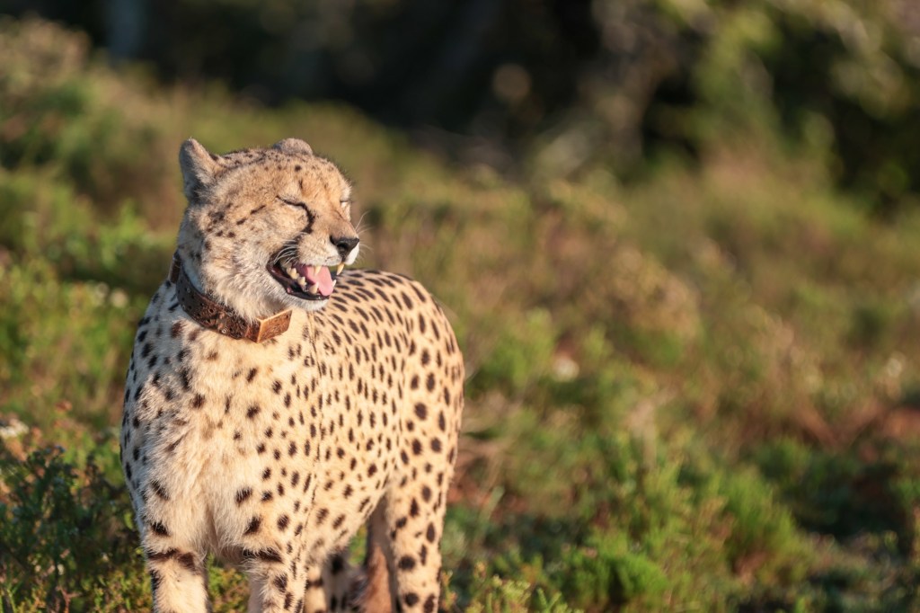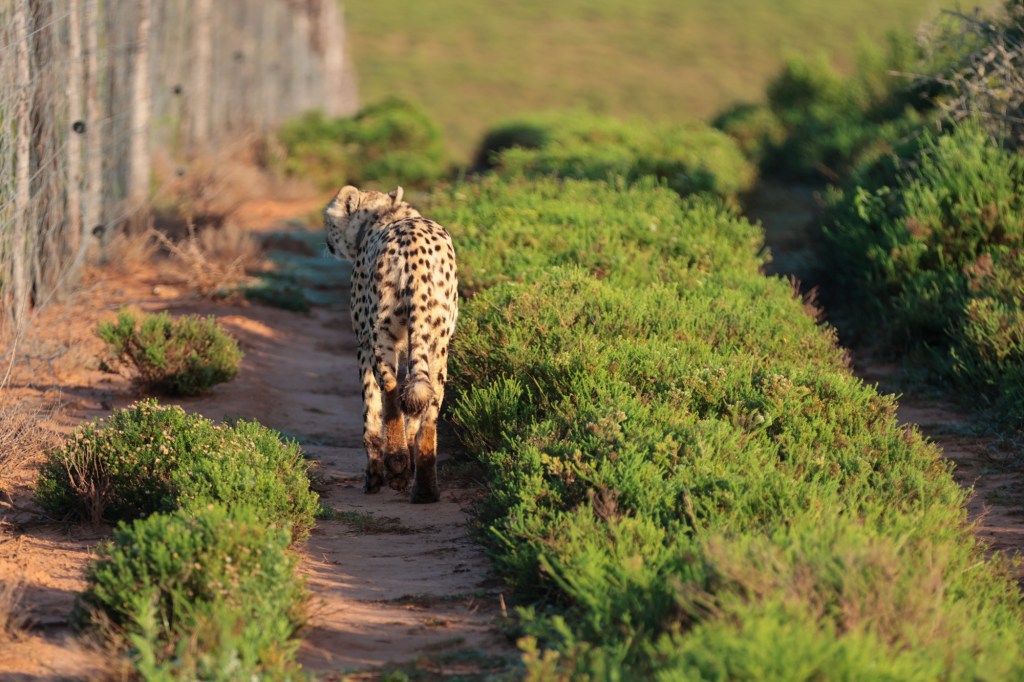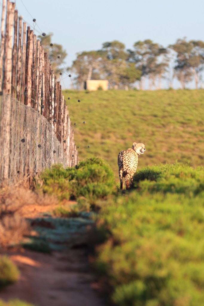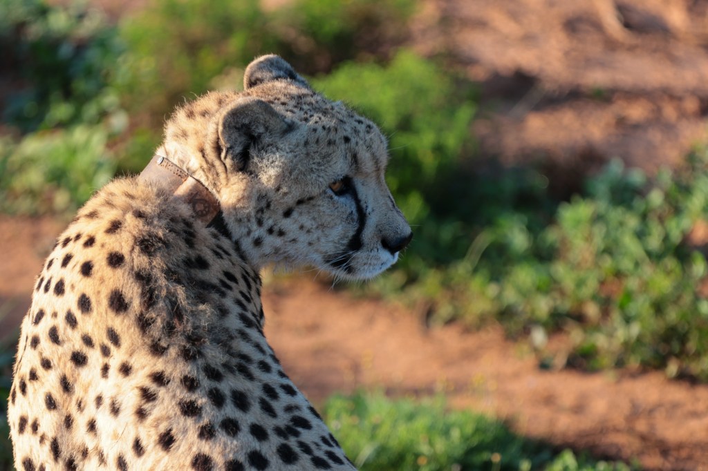 Und ja, die Geparden hier tragen noch einen Tracker. Allerdings nicht damit sie Forrest schneller für uns findet, sondern dass man sie für den Falle der Flucht wiederfindet. In den ersten 3 Jahren nach Einzug der Tiere in den Park ist solch ein Tracker Pflicht, denn es kommt regelmäßig vor, dass die Tiere, egal ob Löwe, Gepard oder Leopard, wieder ausbüchsen.