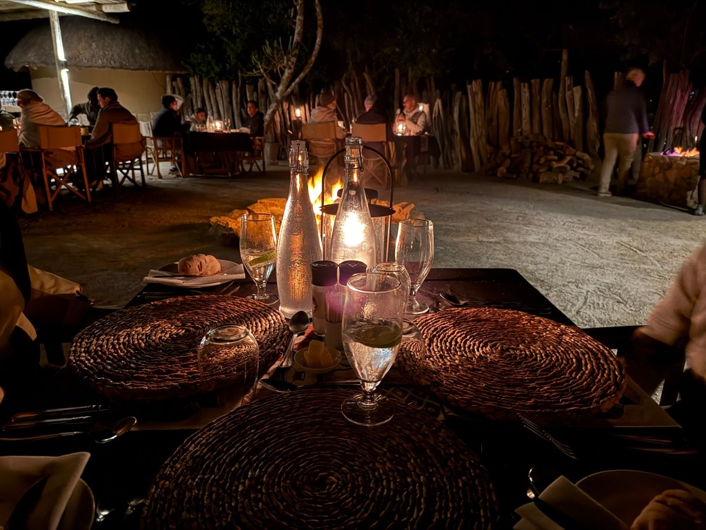 Zurück im Camp erwartete uns Lagerfeuer-Romantik und reichlich Essen vom Grill, mal von der Riesenauswahl an der Outdoorbar abgesehen. Ein perfekter Abschluss einer perfekten Safarizeit in einer wirklich außergewöhnlichen Lodge.
