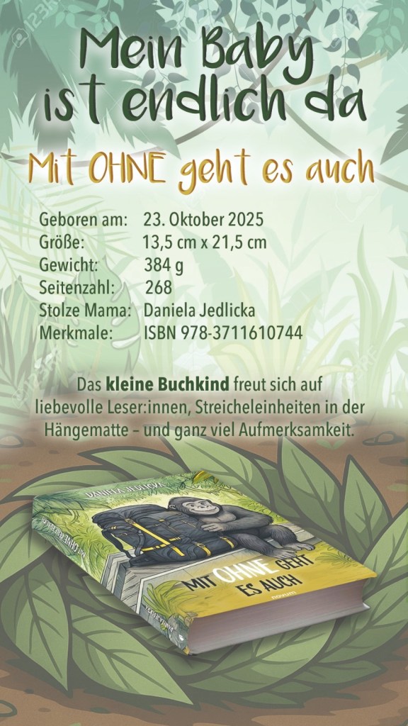 Ich glaube, den ersten Satz habe ich im Oktober 2022 geschrieben. Das wären damit ungefähr drei Jahre Tragezeit. Damit toppe ich sogar meine geliebten Elefanten um einiges. Wenn ich dann noch die Planung und vor allem die zugrundeliegende Geschichte hinter meinem Buch mit einrechne, bin ich bei ca. 14 Jahren, die dieses Baby irgendwie in meinem Kopf bzw. Bauch rumschwirrte. Verdammt lang, wie ich jetzt so feststelle. Es wird einfach Zeit, jetzt wirklich mal zu pressen, zu hecheln und den Dingen seinen natürlichen Lauf zu lassen. Noch ein Klaps auf den Po oder den Buchrücken und dann ist es soweit.